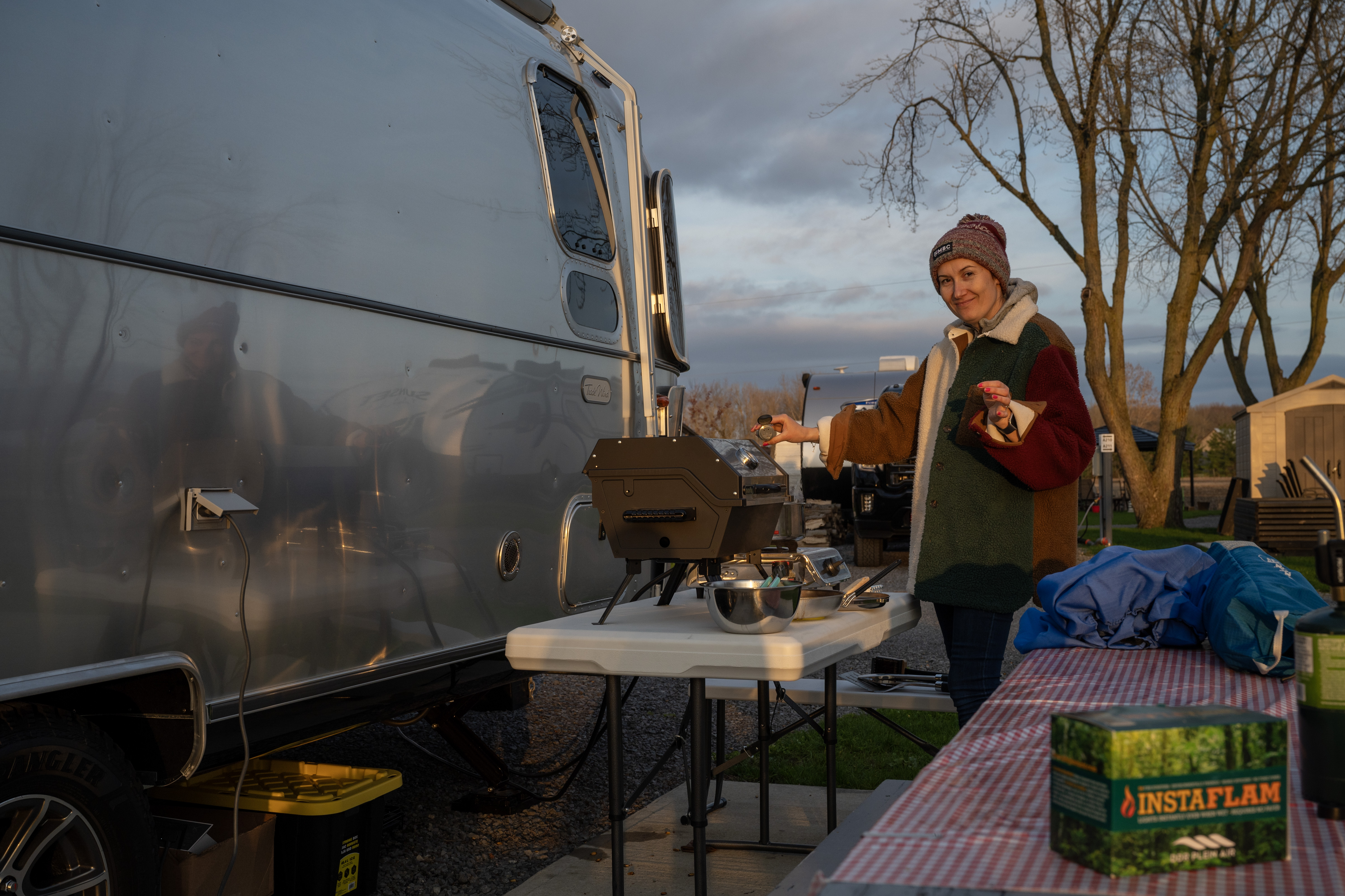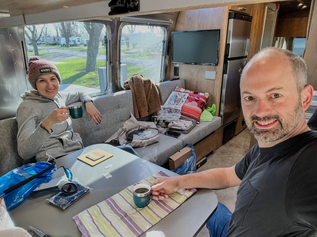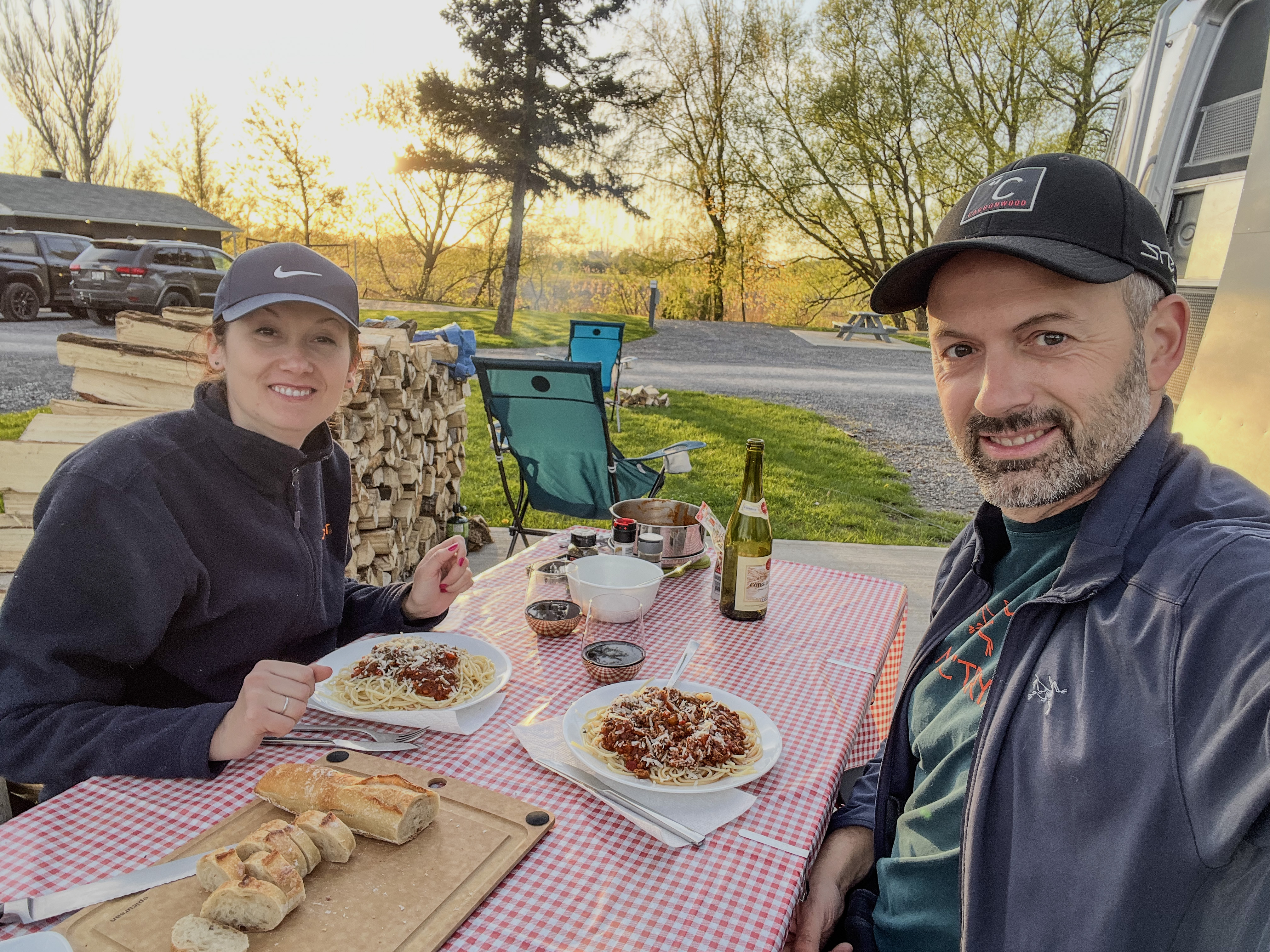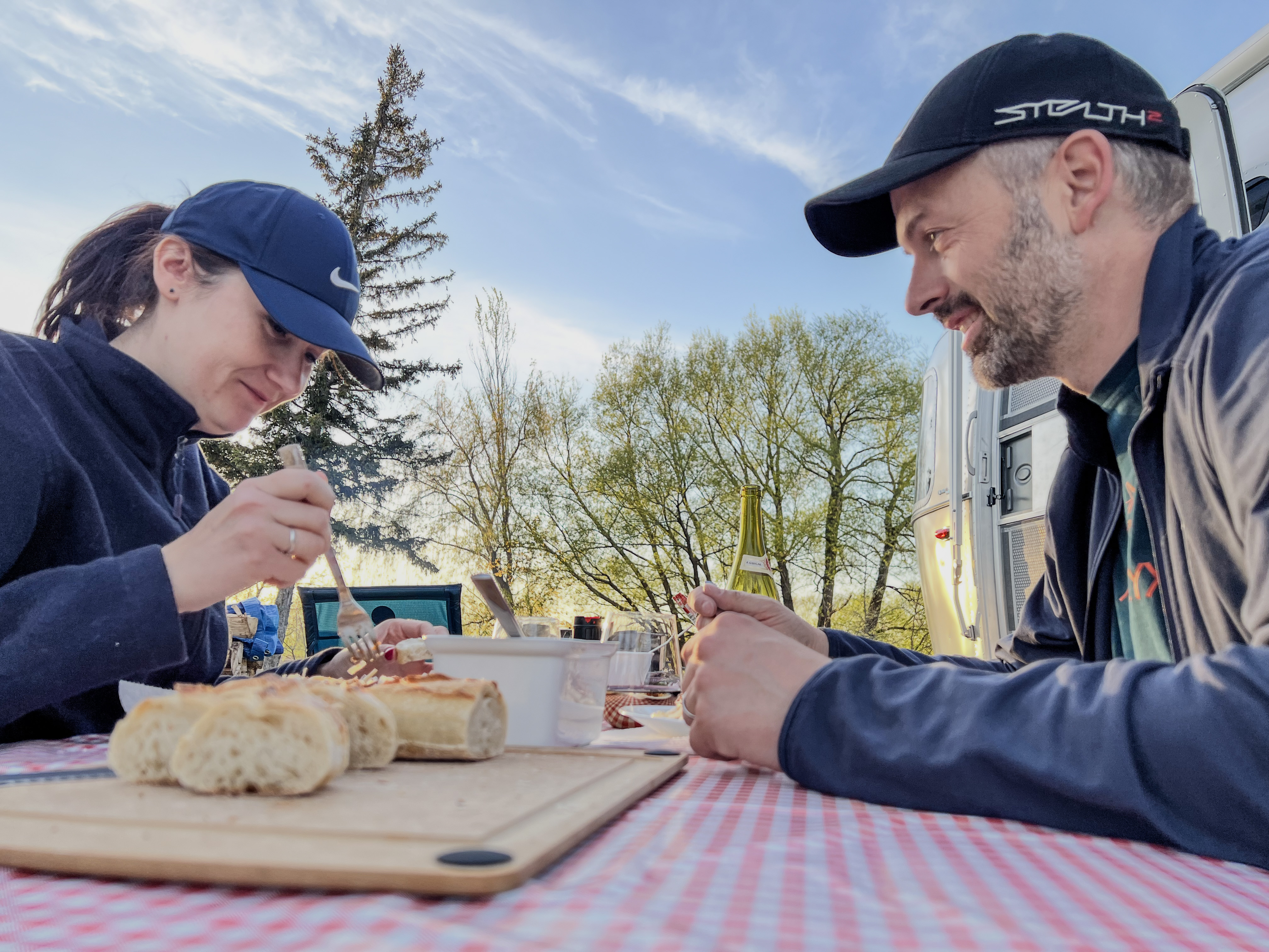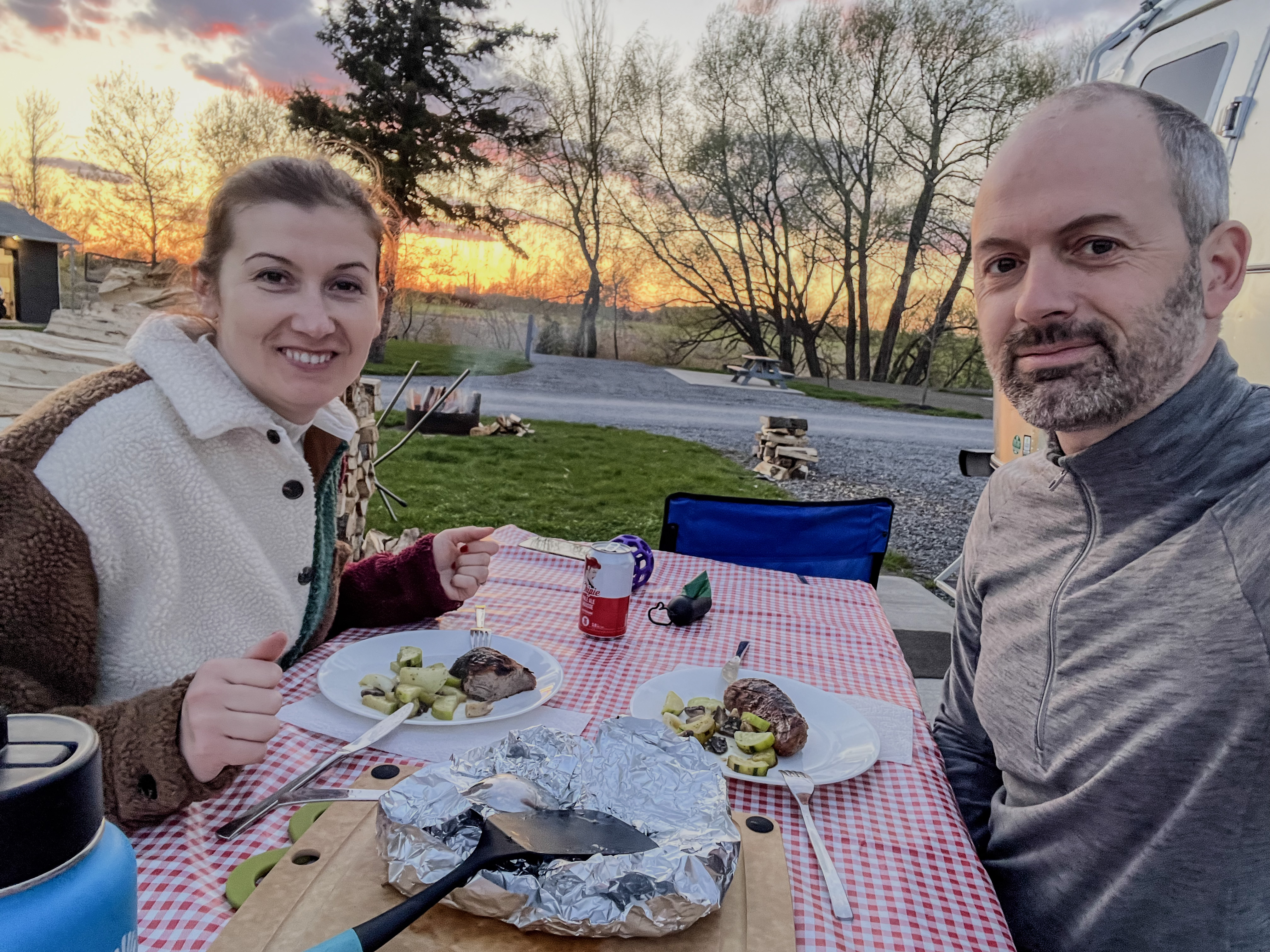 Coming from a big home with a huge kitchen, we were concerned about how we would eat in the camper, if we would eat as well, or if it would be just spaghetti when it rains and steak when it’s sunny and we can BBQ. Turns out, we are eating well! We just had to adapt to the new reality, to the tiny kitchen counter, to not having a true oven, and to the smoke detector occasionally turning on when we make toast in the morning…