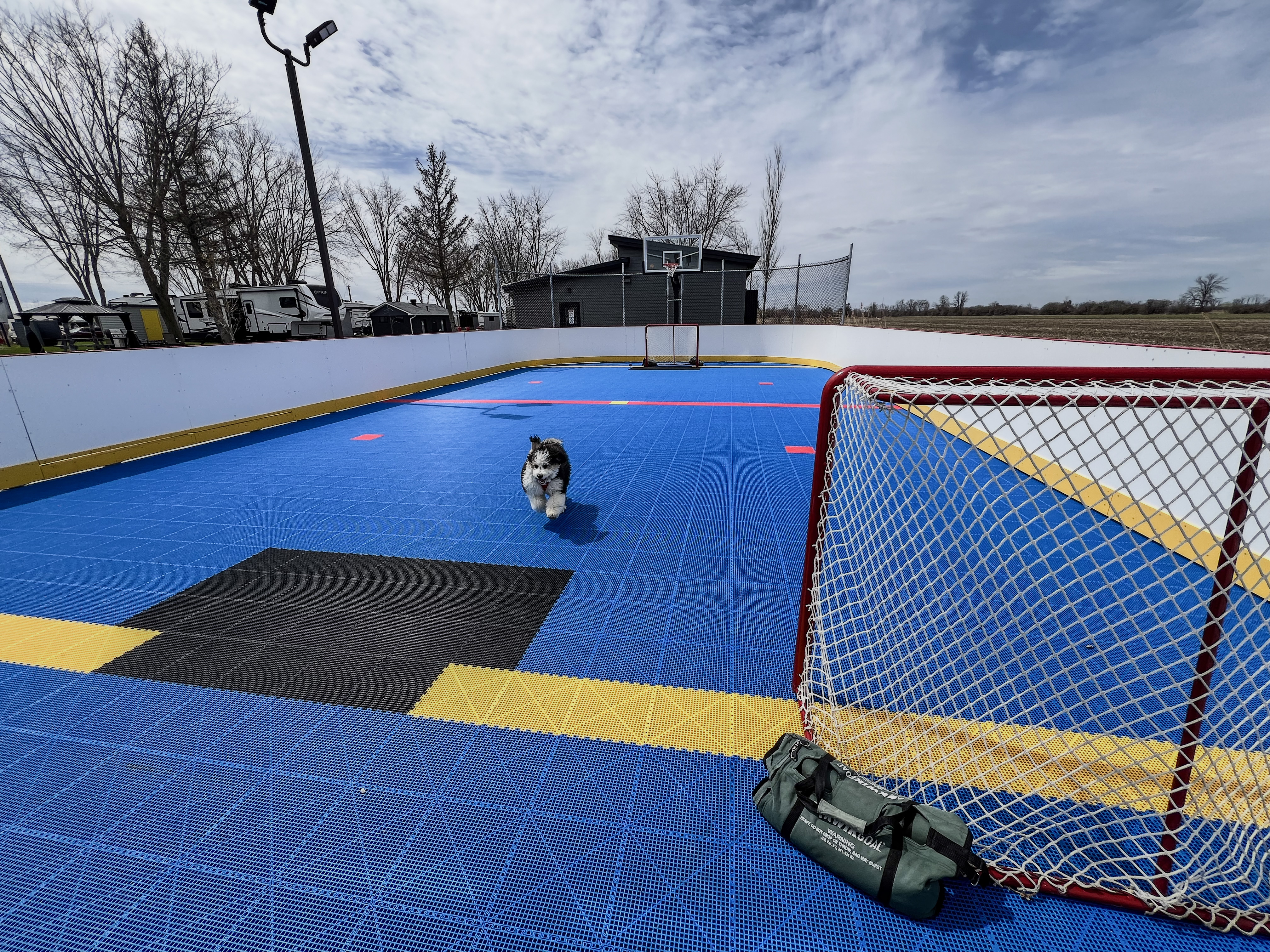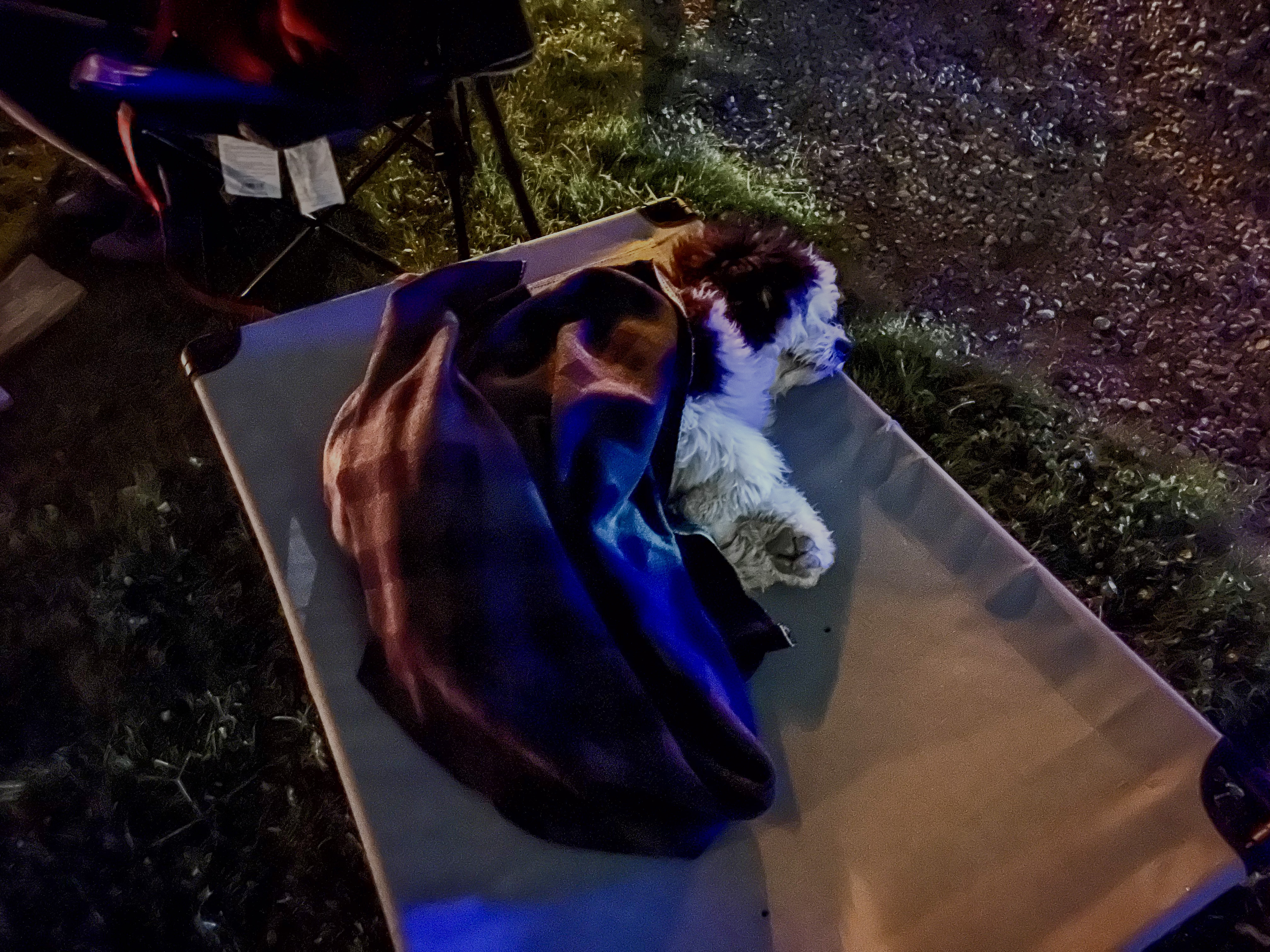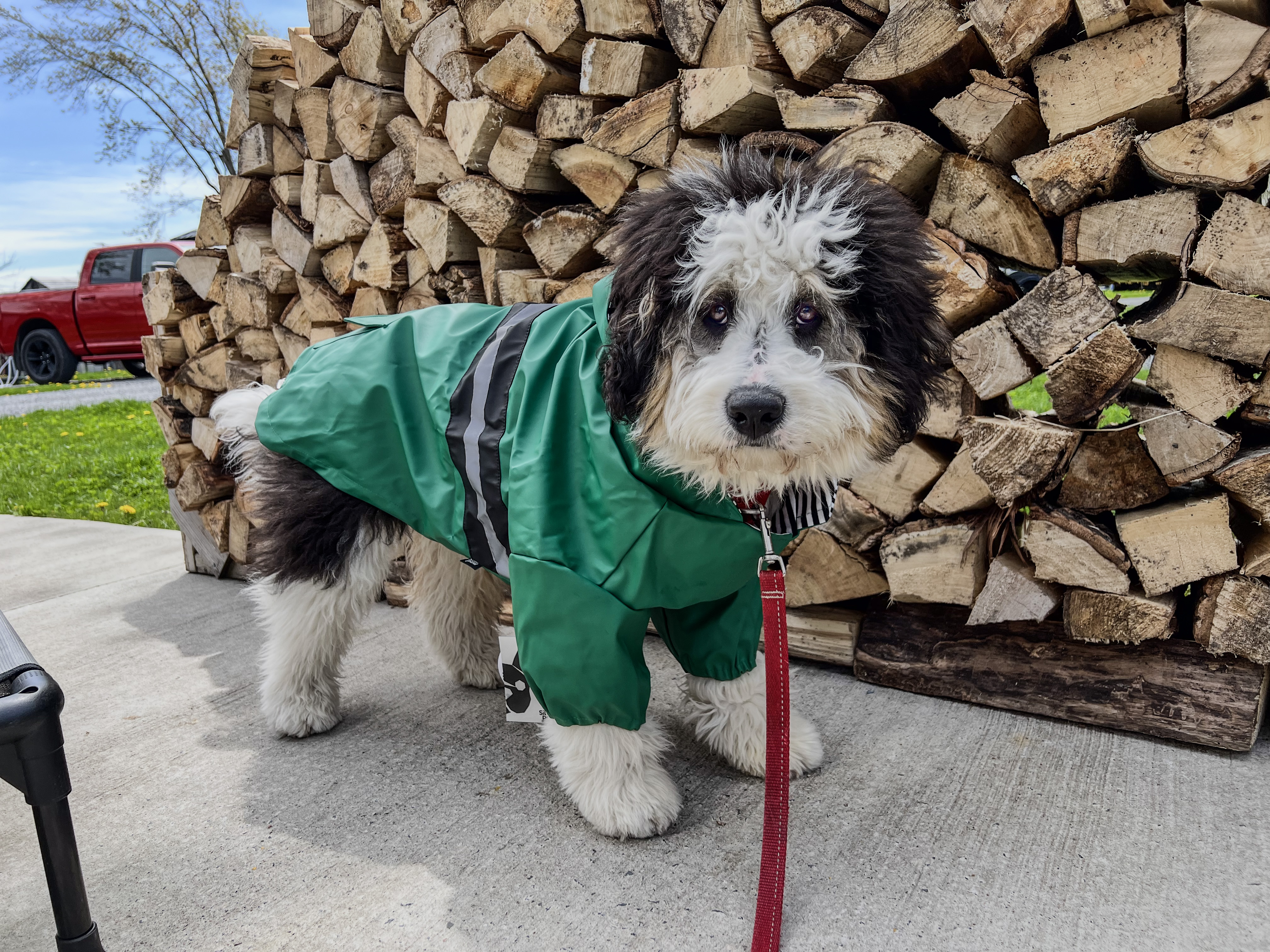 Meeko experienced new things as well: running in a hockey rink, heavy rain and how to wear a raincoat (not really happy at the beginning, but he got used to it). He would also sleep in next to us by the fireplace: being a puppy is hard work 🙂