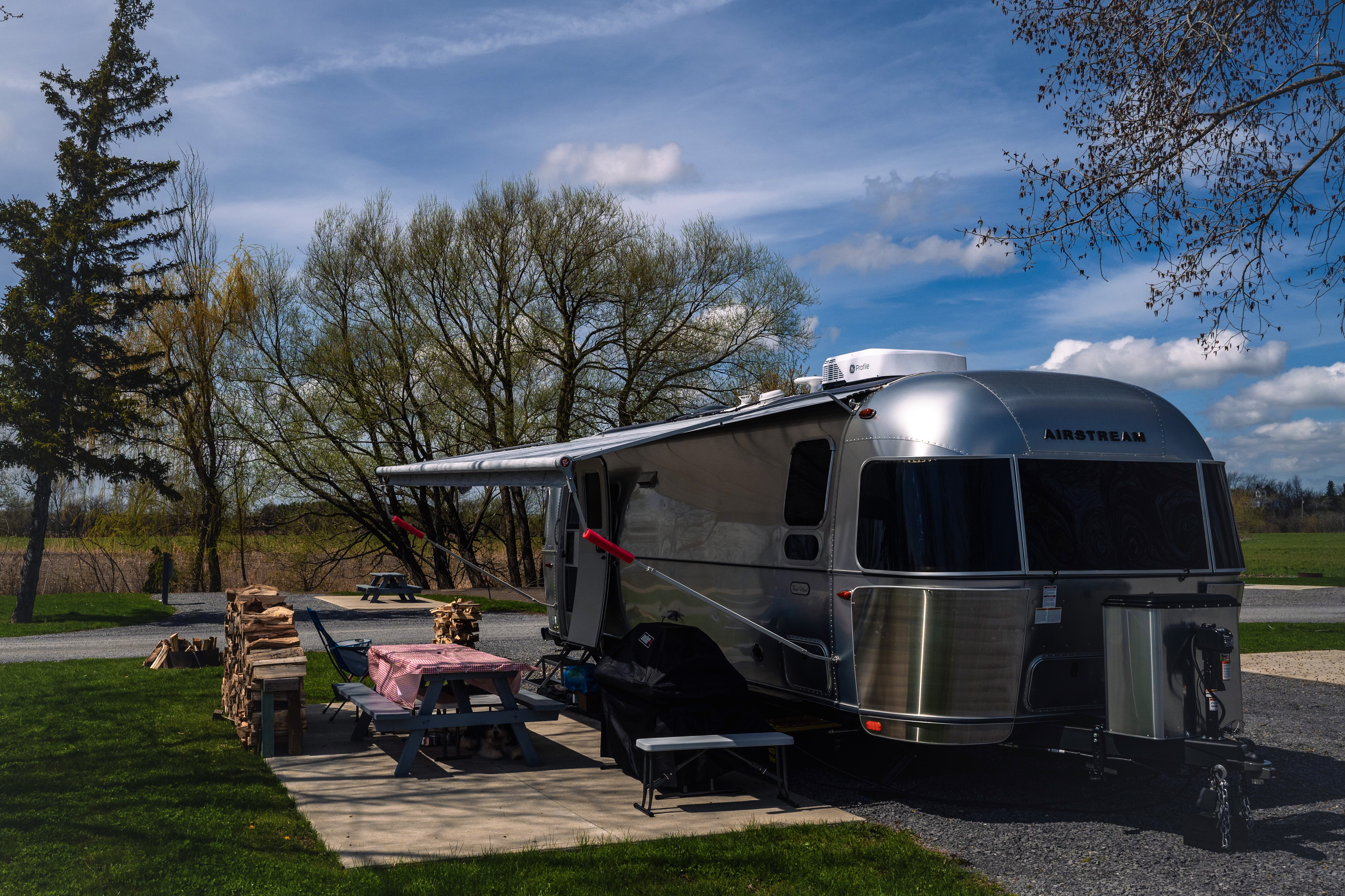 … or as people call it, “maiden voyage” or “first outing.” This expression is used to mark the first trip you take in your Airstream. For us, it was not just the “first outing” but also the first time (for Pascal) towing anything, the first time driving it through the city (we had to cross Montreal from West to East). It was the first time camping in a roulotte, the first time sleeping in separate beds (Airstream made an error and instead of sending us the queen bed we ordered, they sent a twin bed configuration). A lot of firsts.