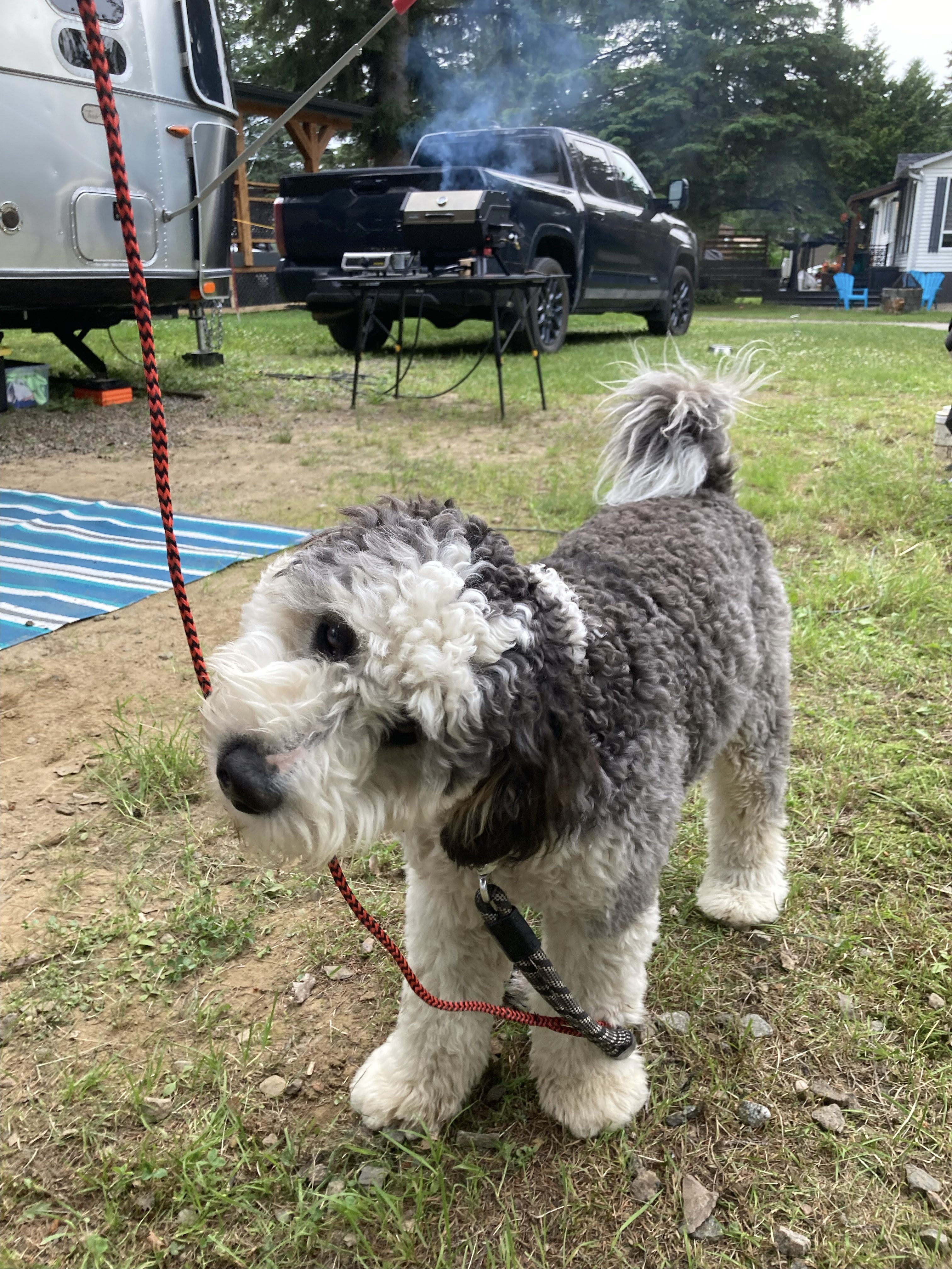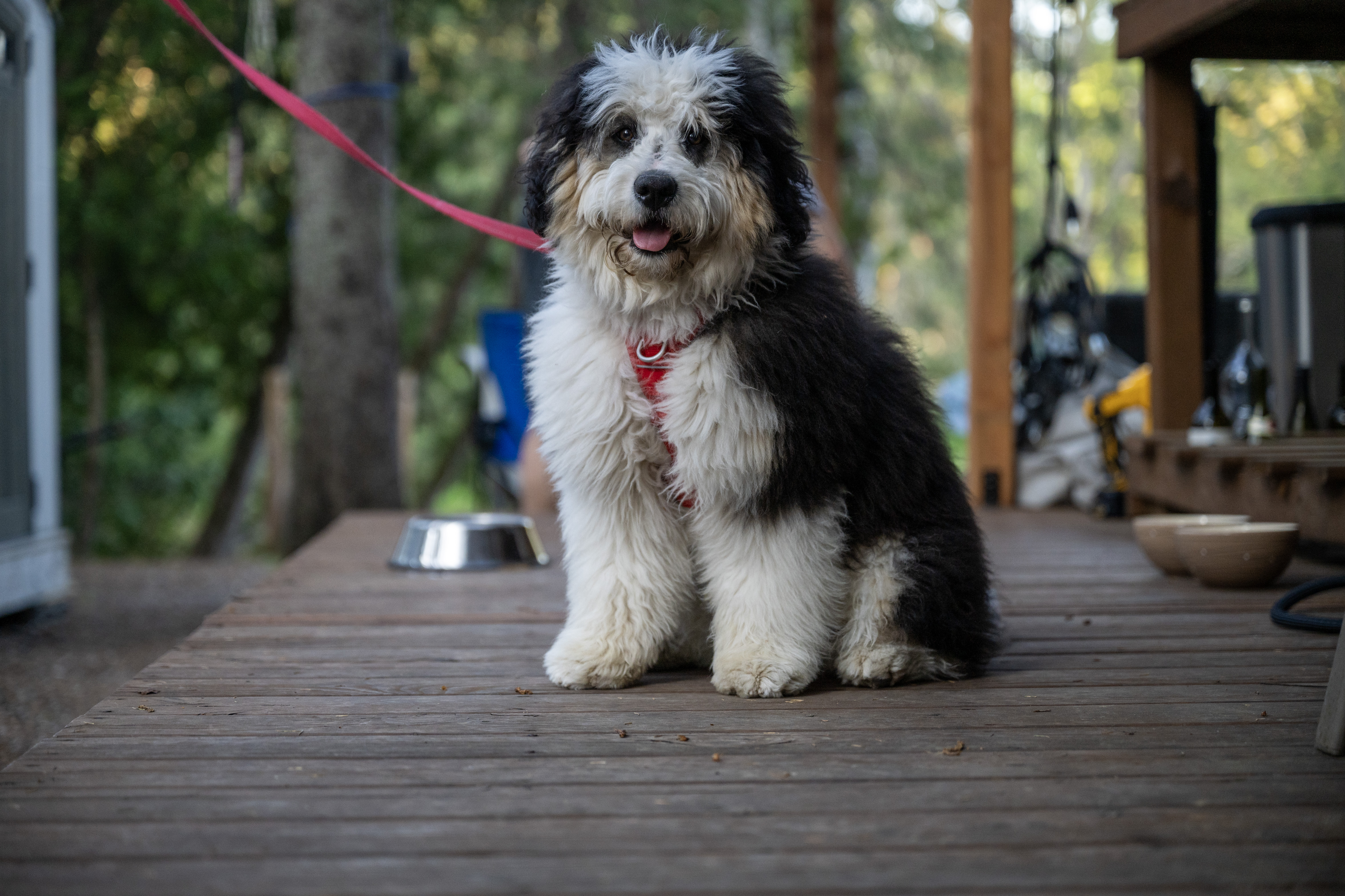 Meeko experienced a lot of new things: his first haircut, his first swim in the river, first time doing paddle board and a lot of walks in the forest.