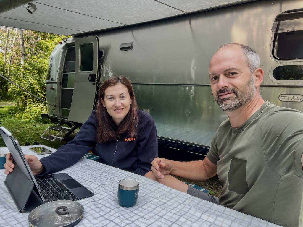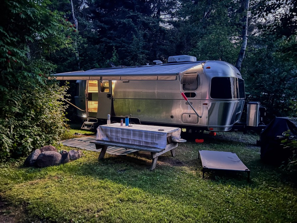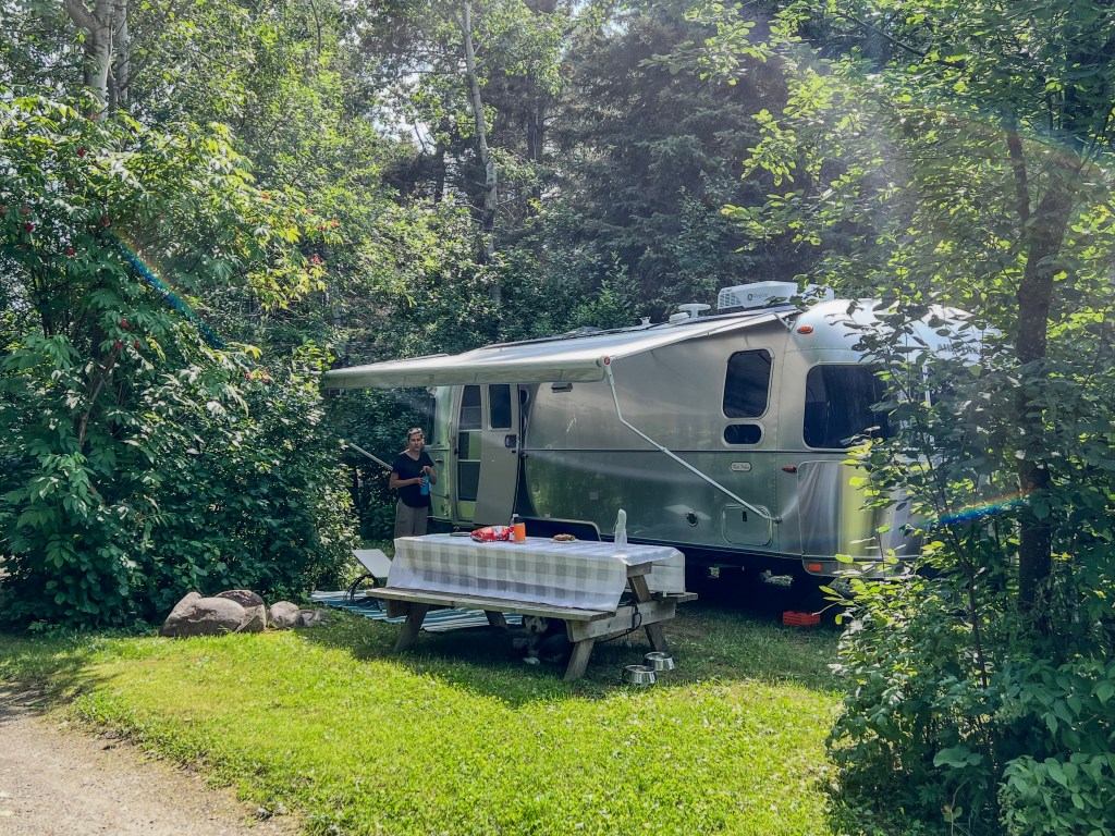 We chose a quiet spot in a corner of the campground. We are trying not to have too many neighbors as we get used to the experience. When we do our research online for the next campgrounds to stay at, we notice that a lot of them have small lots where you are so close to your neighbor that you could “hit elbows” 🙂 I am exaggerating, of course, but people who have camped before know what I mean 😉