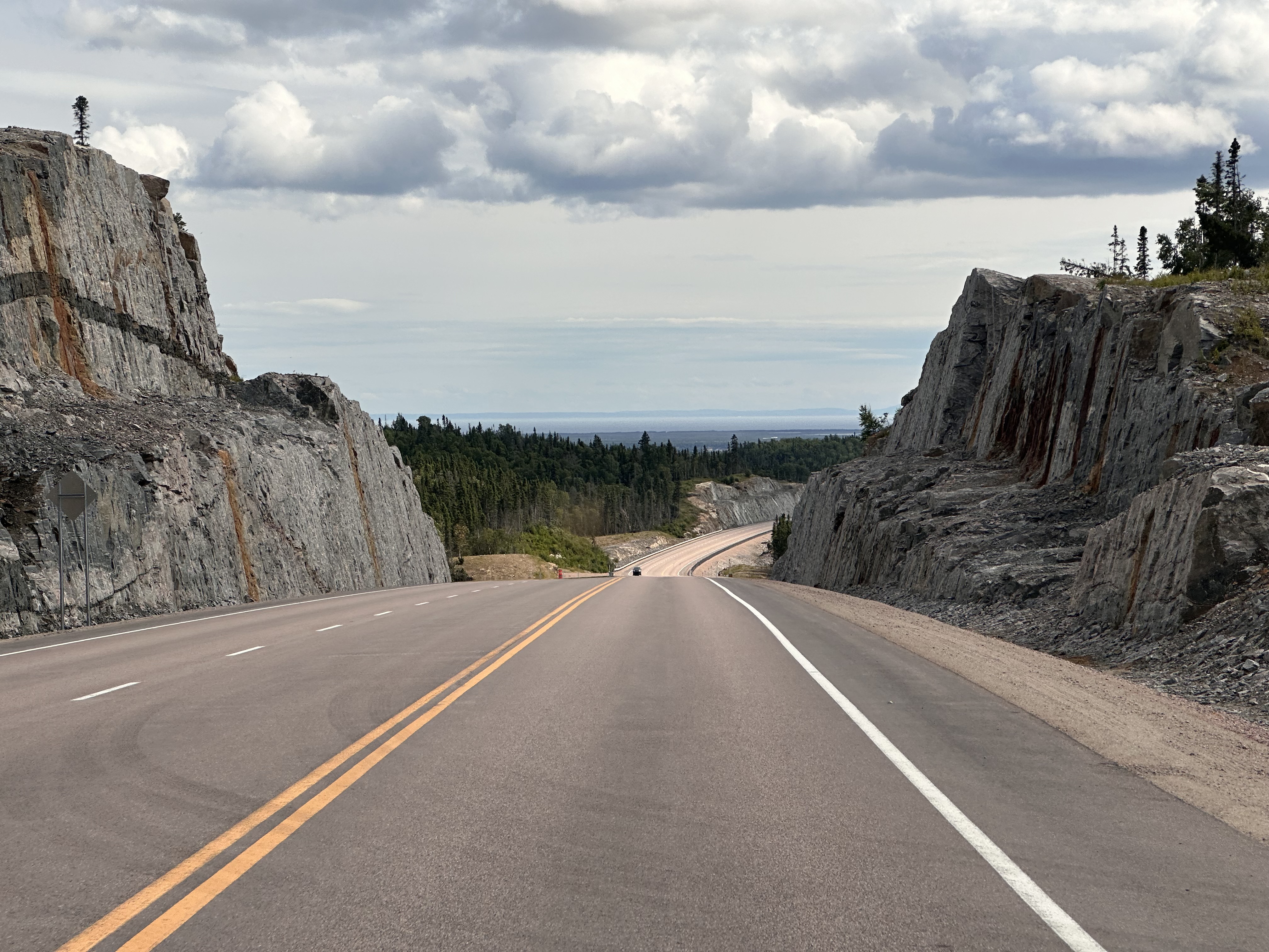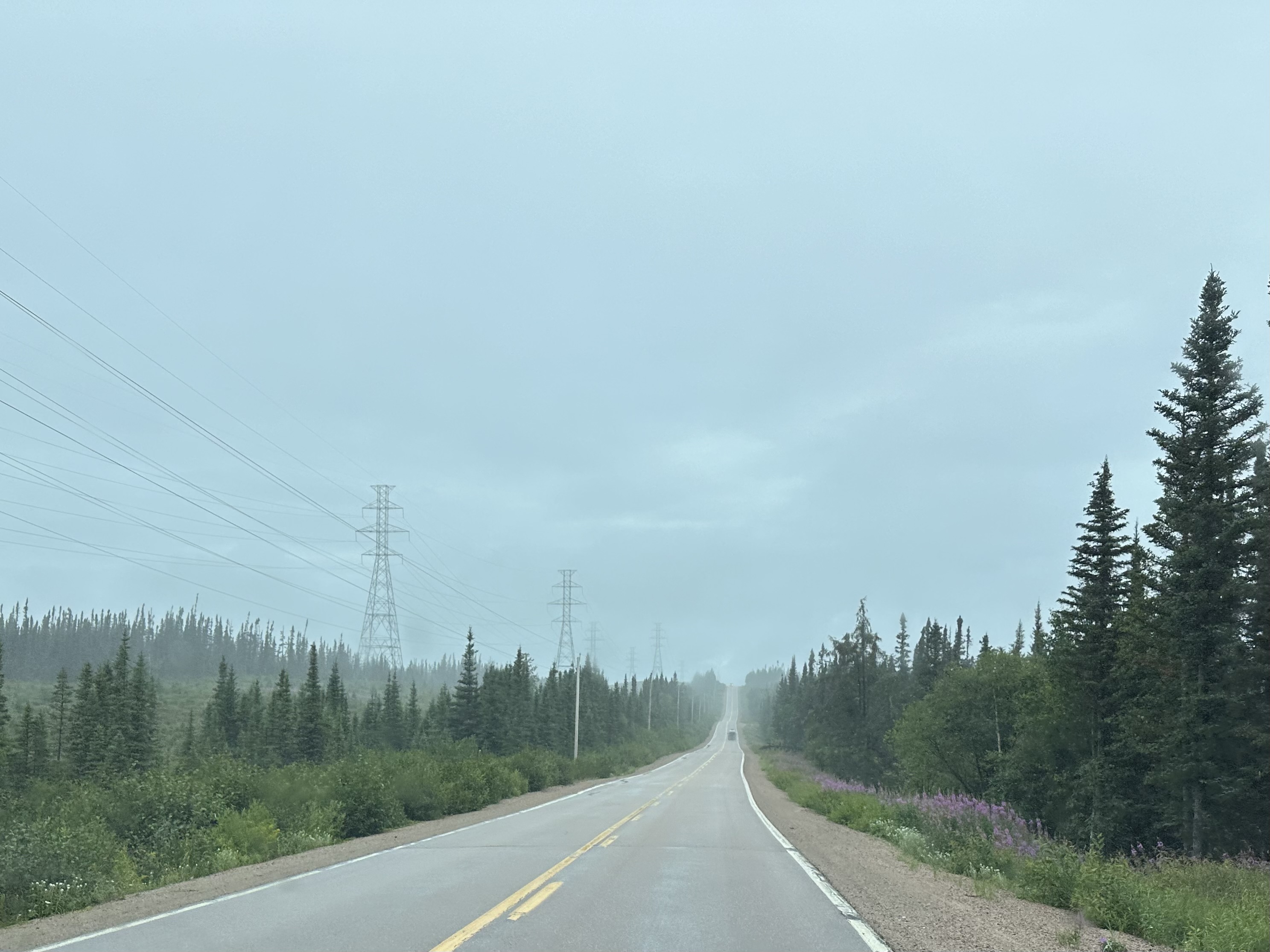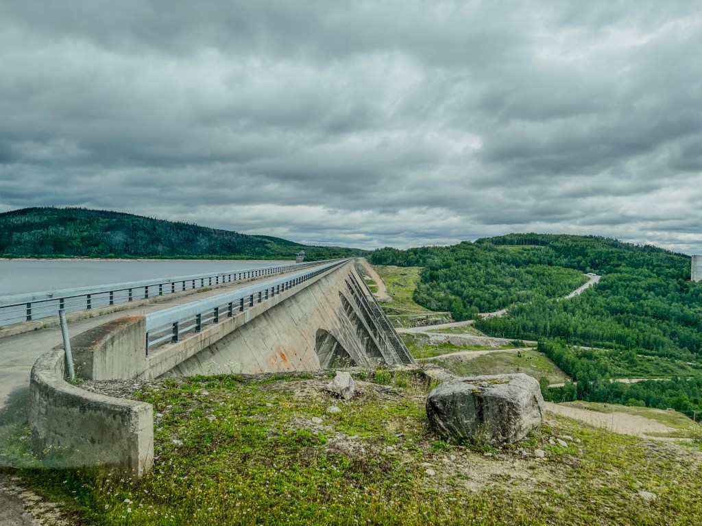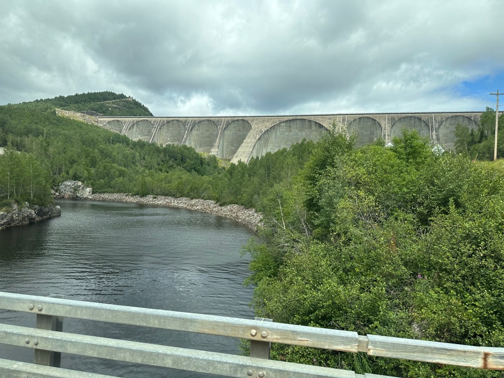 When we started our trip, we decided to take the north side of the Saint Laurent River just to visit Manic 5. It did not disappoint! I should start by saying that it is a commitment to visit: it takes 2-3 hours just to get there, then another 1-2 hours for the visit… and at the end of that, another 3 hours to get back “home.” This is not meant to scare anyone or discourage anyone from visiting. It’s the opposite: to make the most out of this experience, you need to prepare accordingly, bring water, your lunch, and fill your gas tank before you start your trip. Then you’re in for some wonderful landscapes, small lakes and ponds, and a surprisingly fun road to drive (no orange cones here).