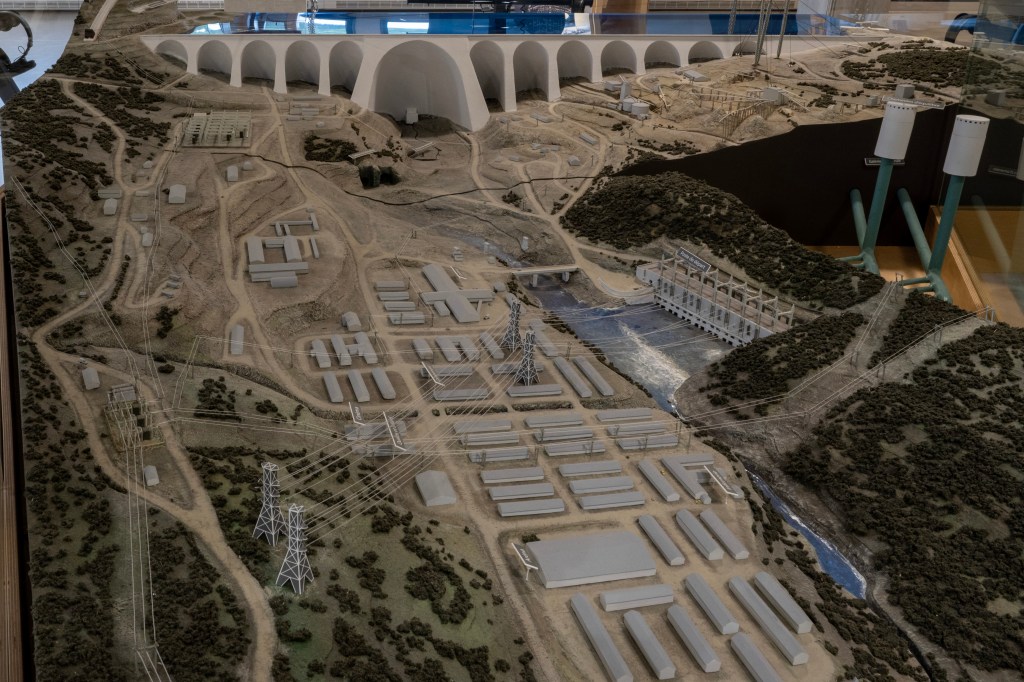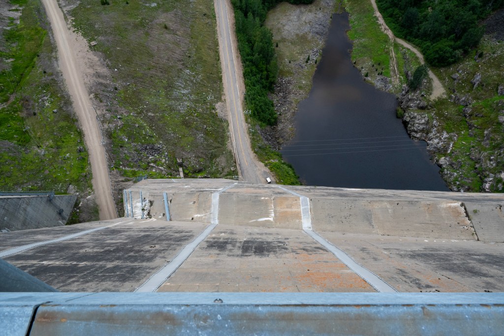 The second interesting fact is that the same water flow that produces electricity at Manic 5 is “reused” downstream for three other power plants: Manic 1, Manic 2, and Manic 3. There is no Manic 4, as one might expect, because the waterfall at Manic 3 is powerful enough to generate electricity for what would have been both plants 3 and 4 combined. The reservoir of Manic 3 is higher than where Manic 4 was supposed to be built, so the Manic 4 waterfall is now underwater, “inside” Manic 3 reservoir.