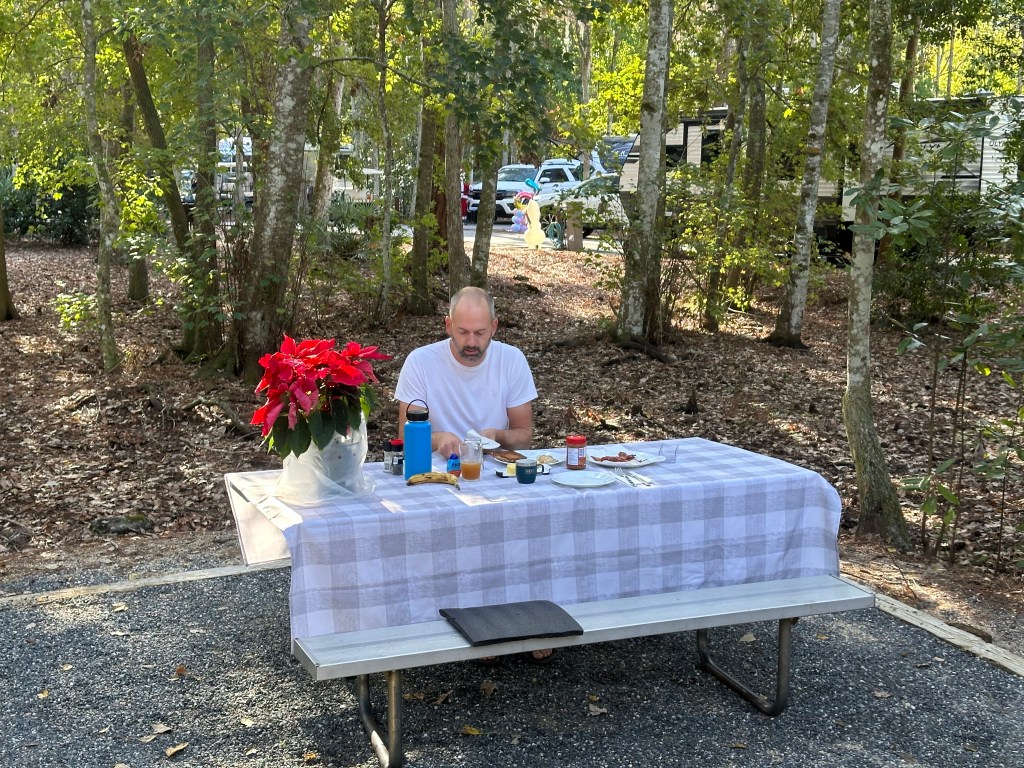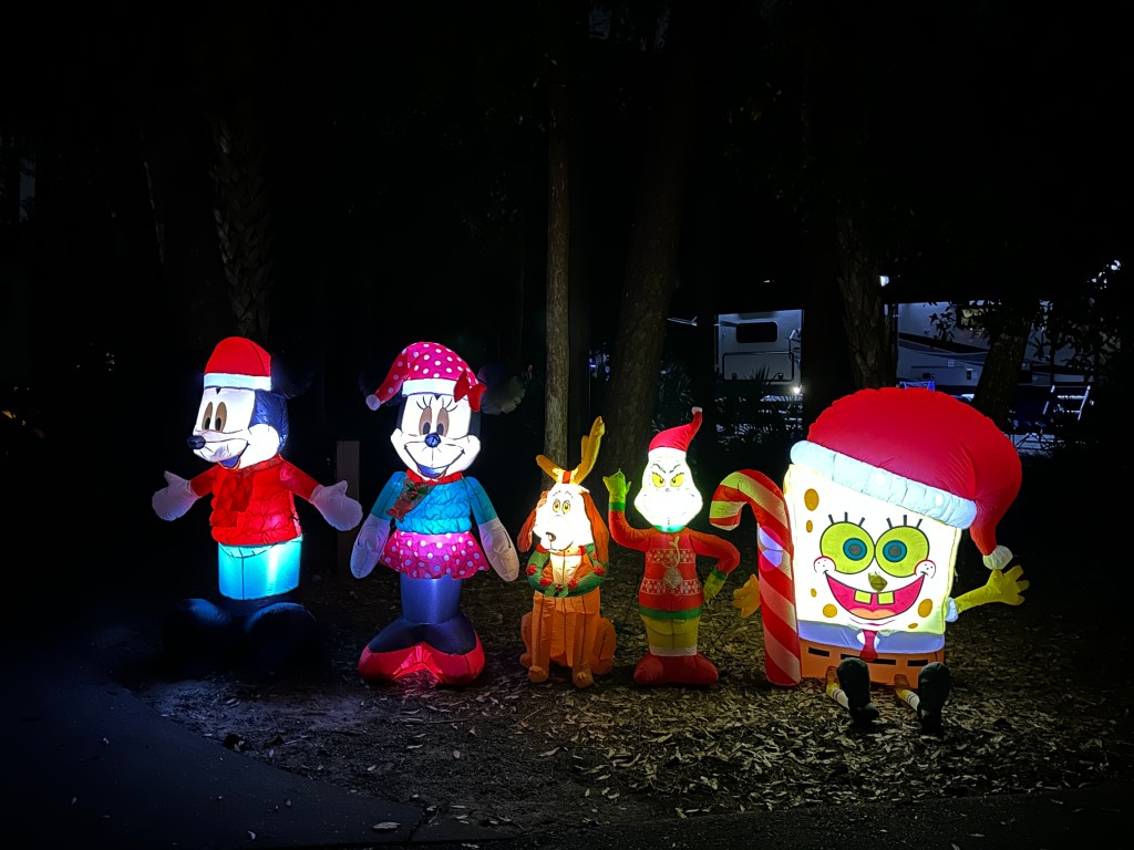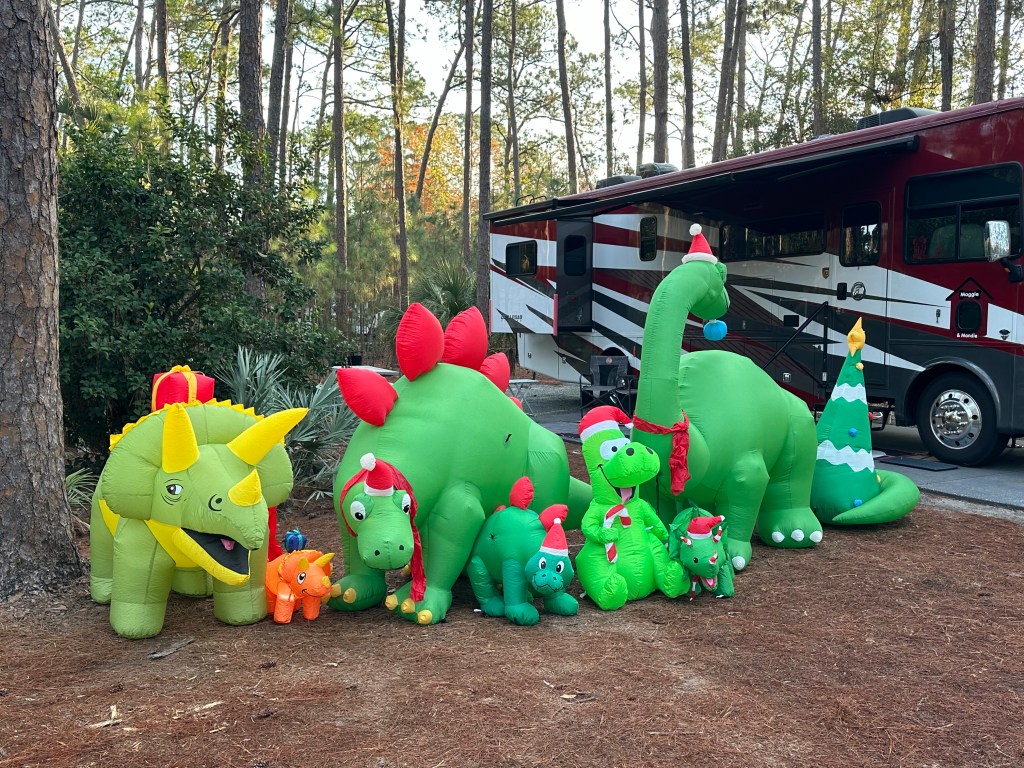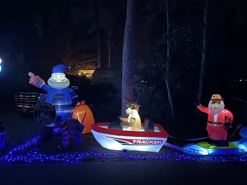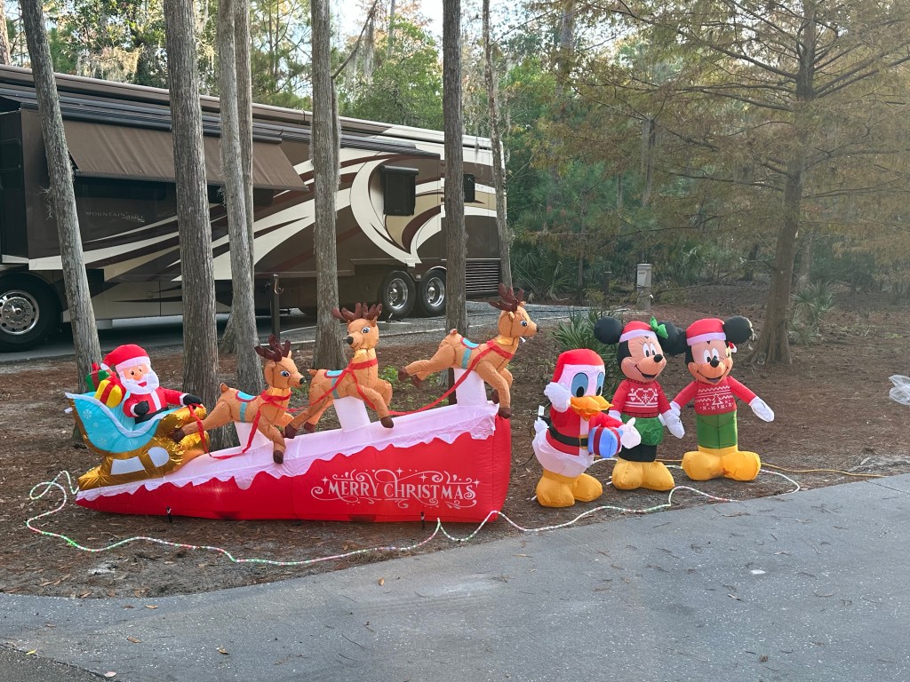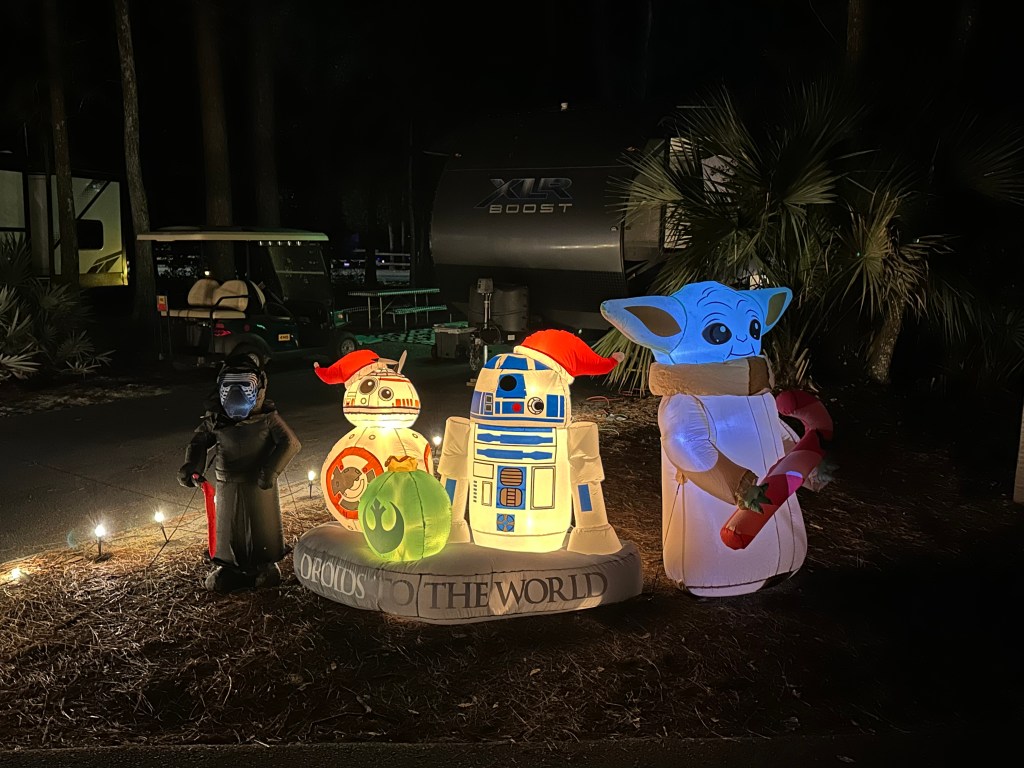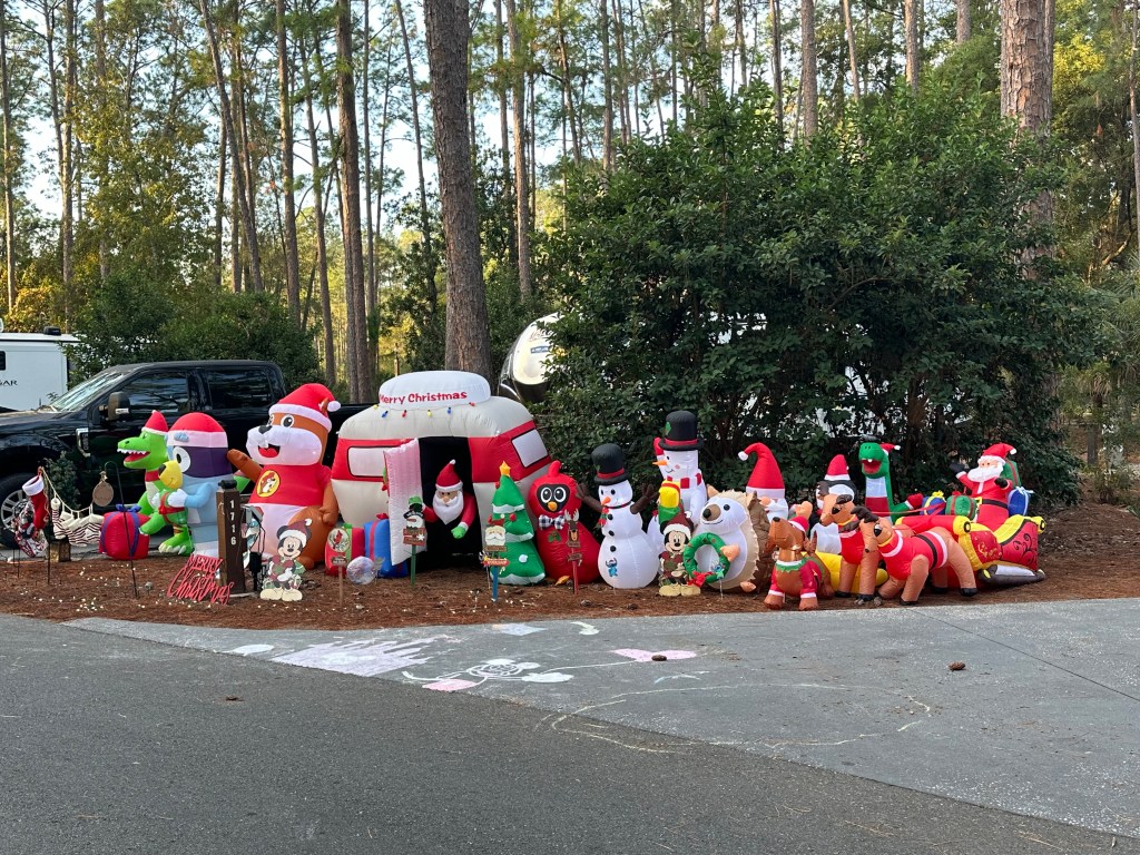But this one was special, and it deserves its own post… because the people made it magical. The campground was huge and quite full, and most of the guests had decorated their lots, trailers, and golf carts with Christmas decorations. Then, each evening, when the lights came on — that’s when the magic truly happened.