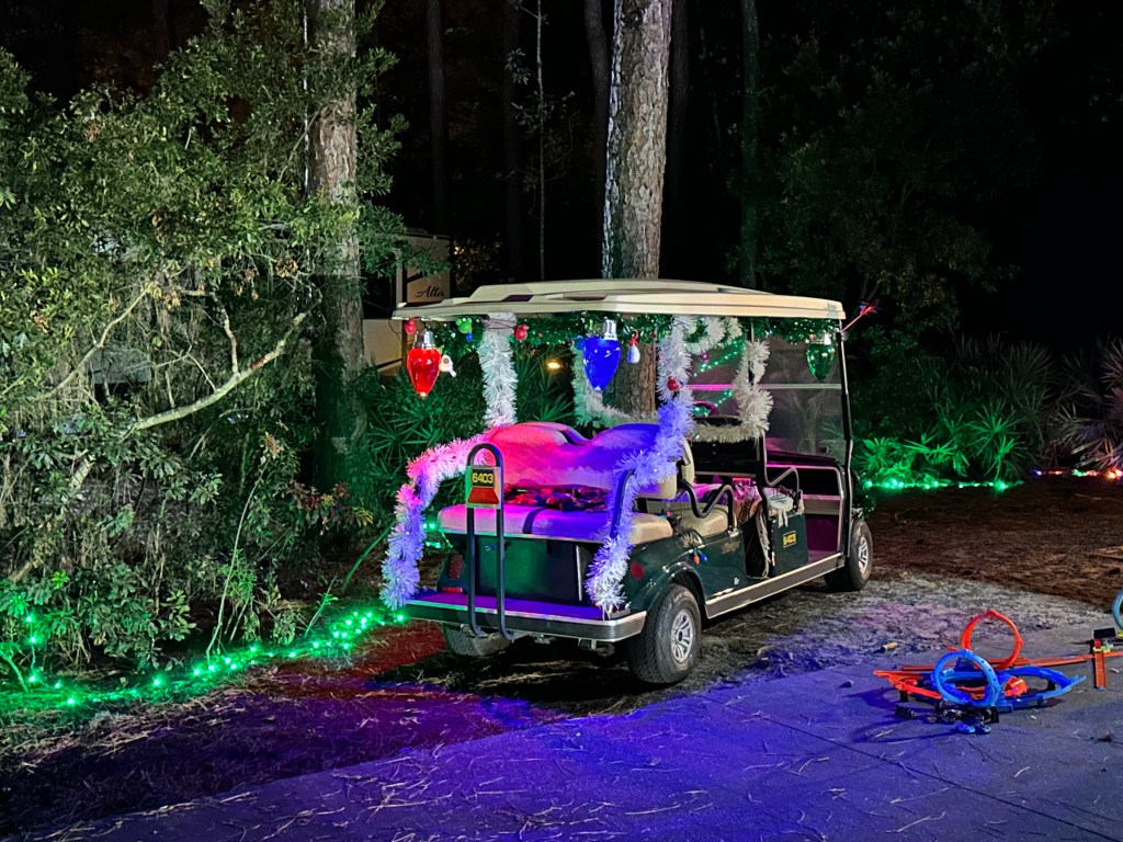 Almost everyone (we didn’t) had a golf cart, and it was funny to see them driving around in their decorated carts to admire the decorations of others. It felt like a parade of who has the nicest decorations.
