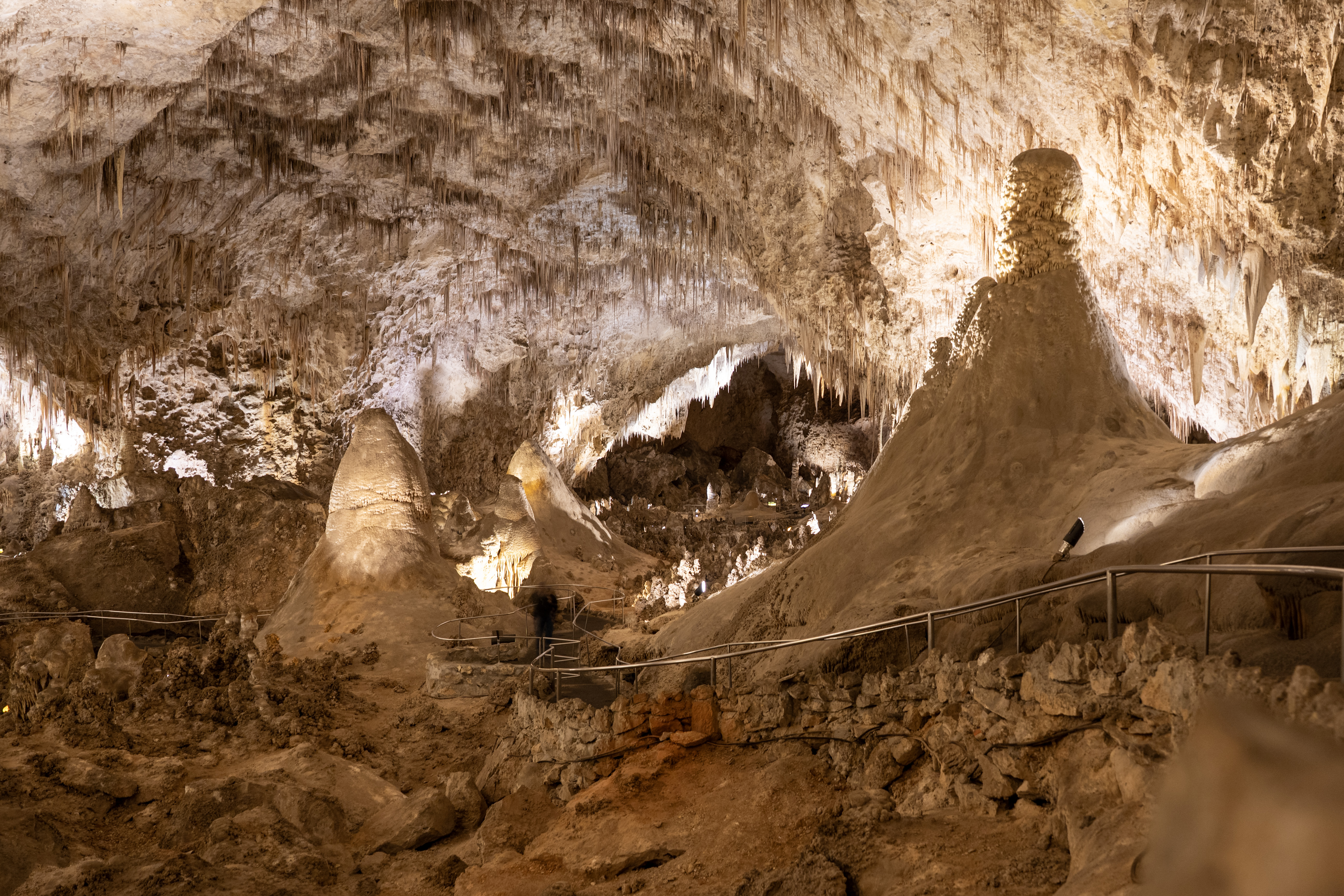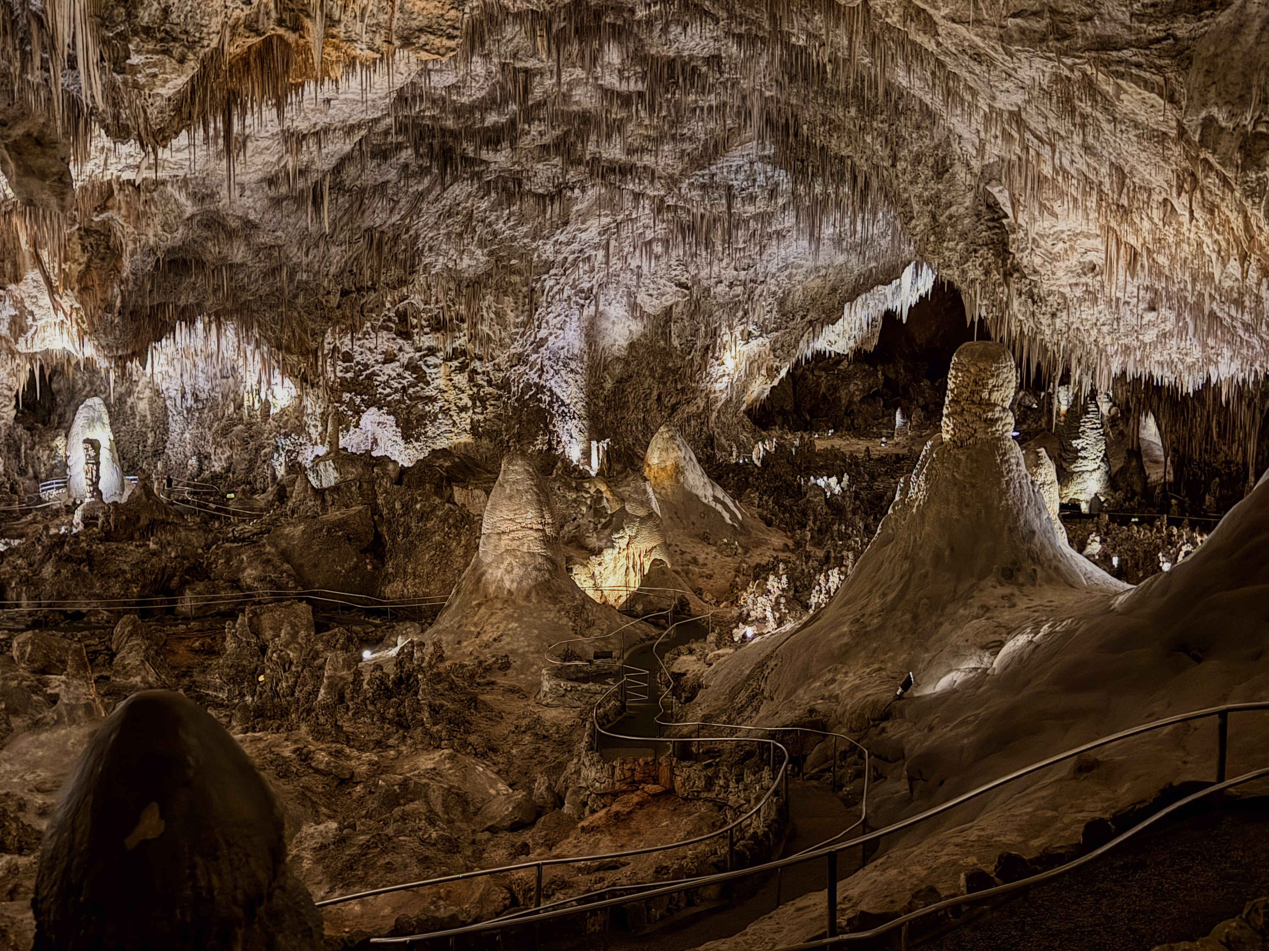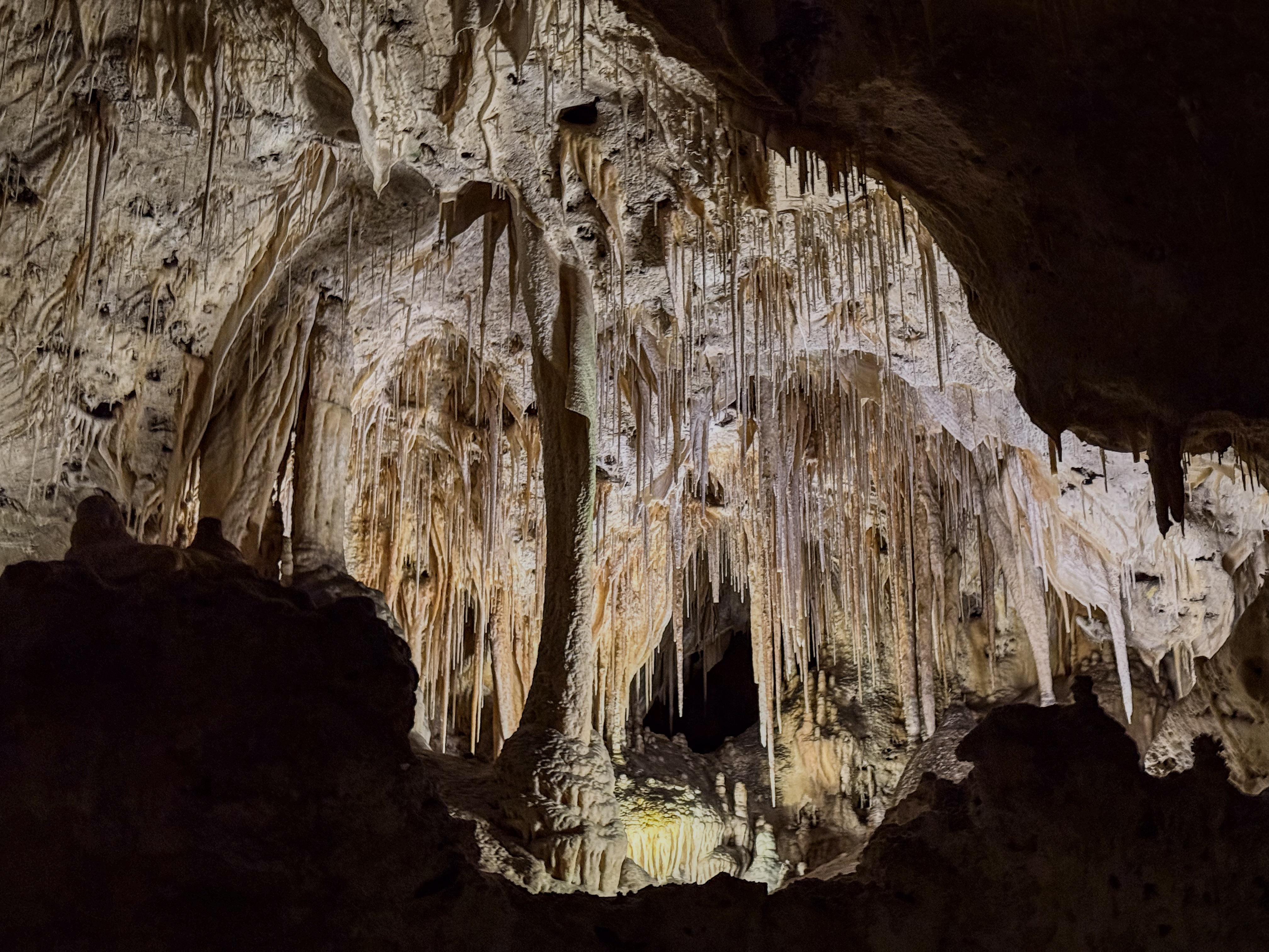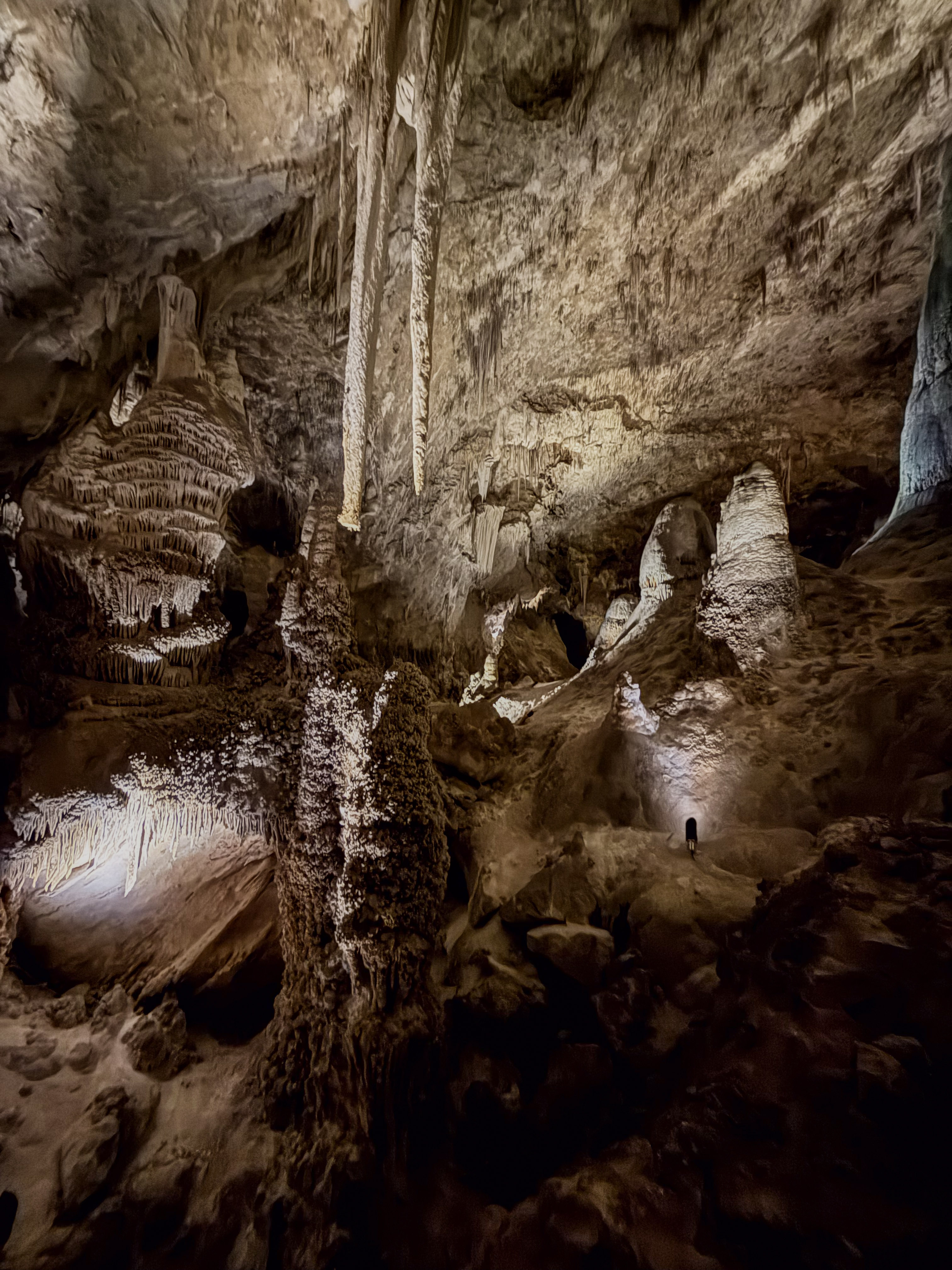 You feel the “weight” of the mountain on your shoulders once you realize just how deep inside it you are! Sometimes you look up, and the ceiling is 350 feet (106 meters) high. Other times, you look down and see another level 75 feet (23 meters) below you. Our 2 km walk through the caverns revealed something new at every step.