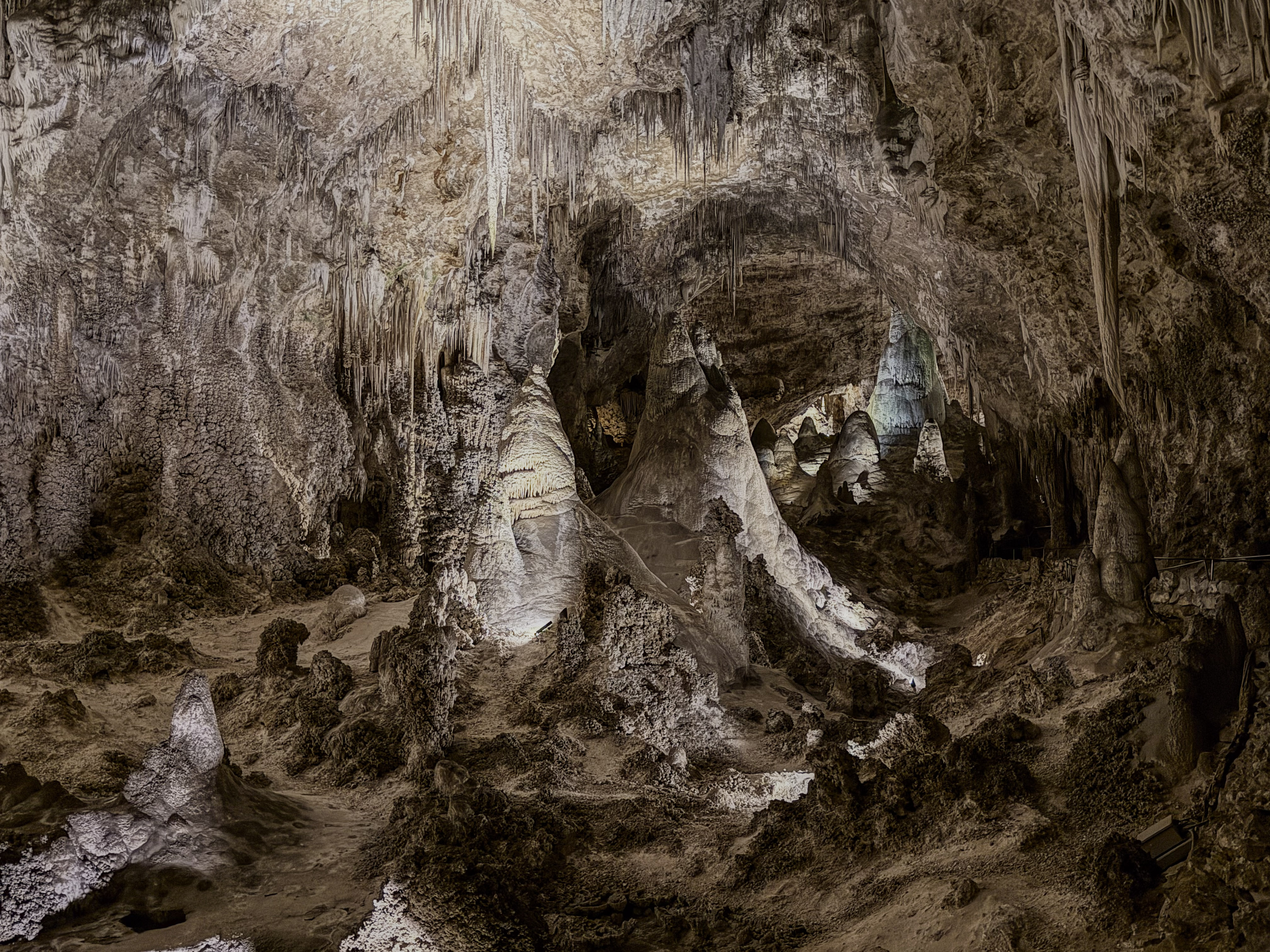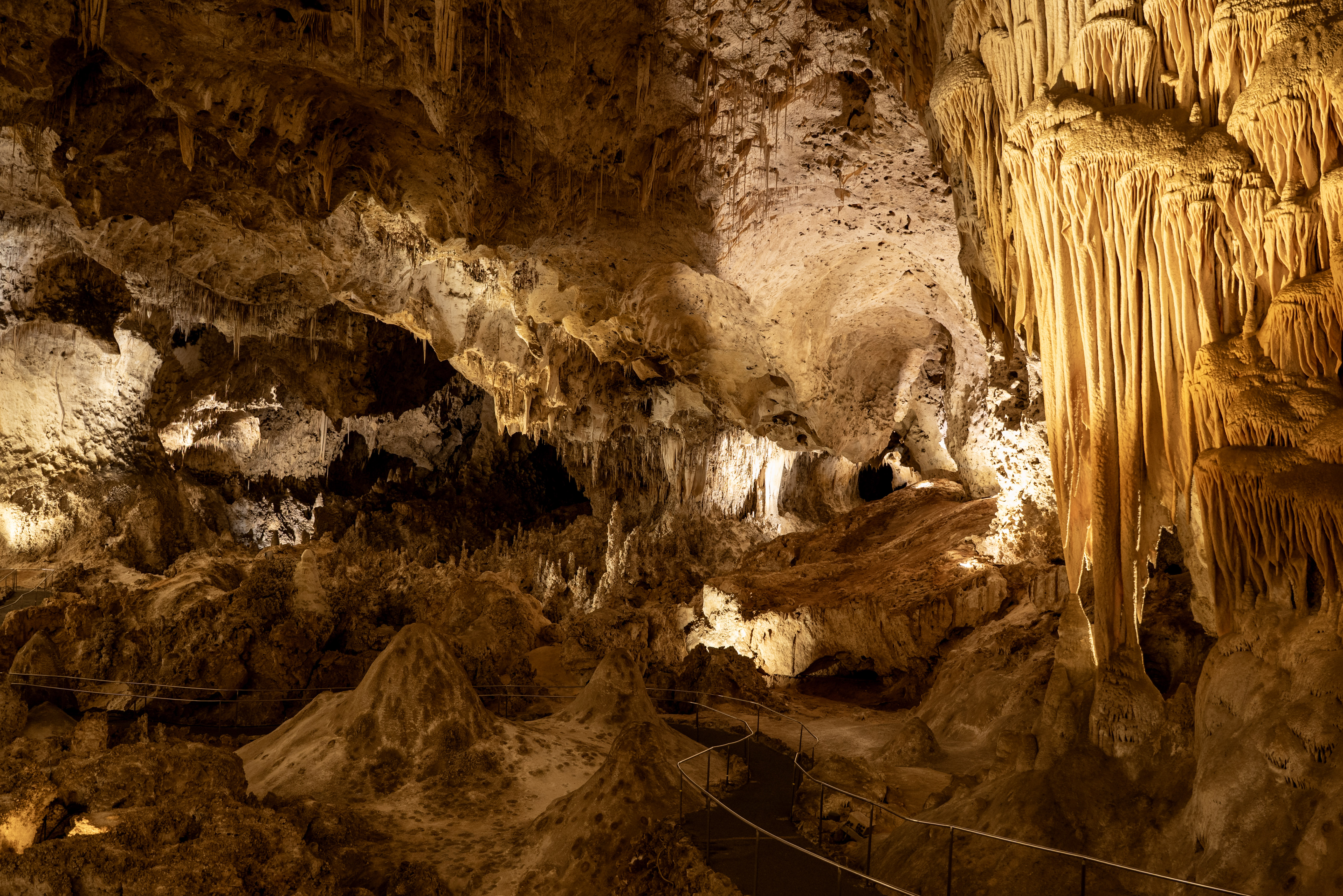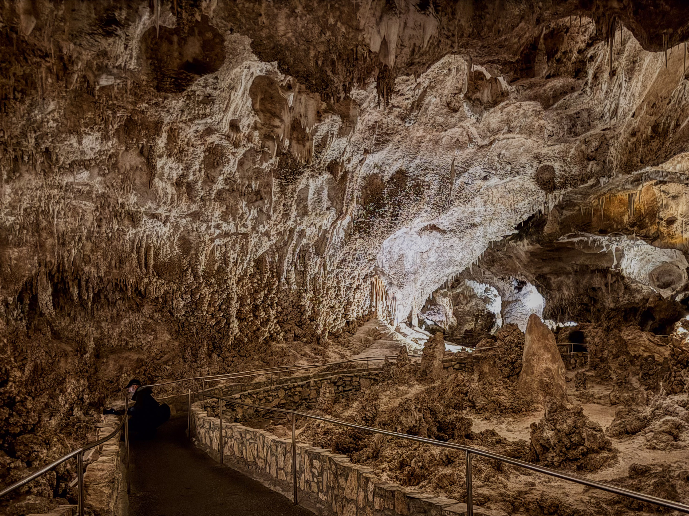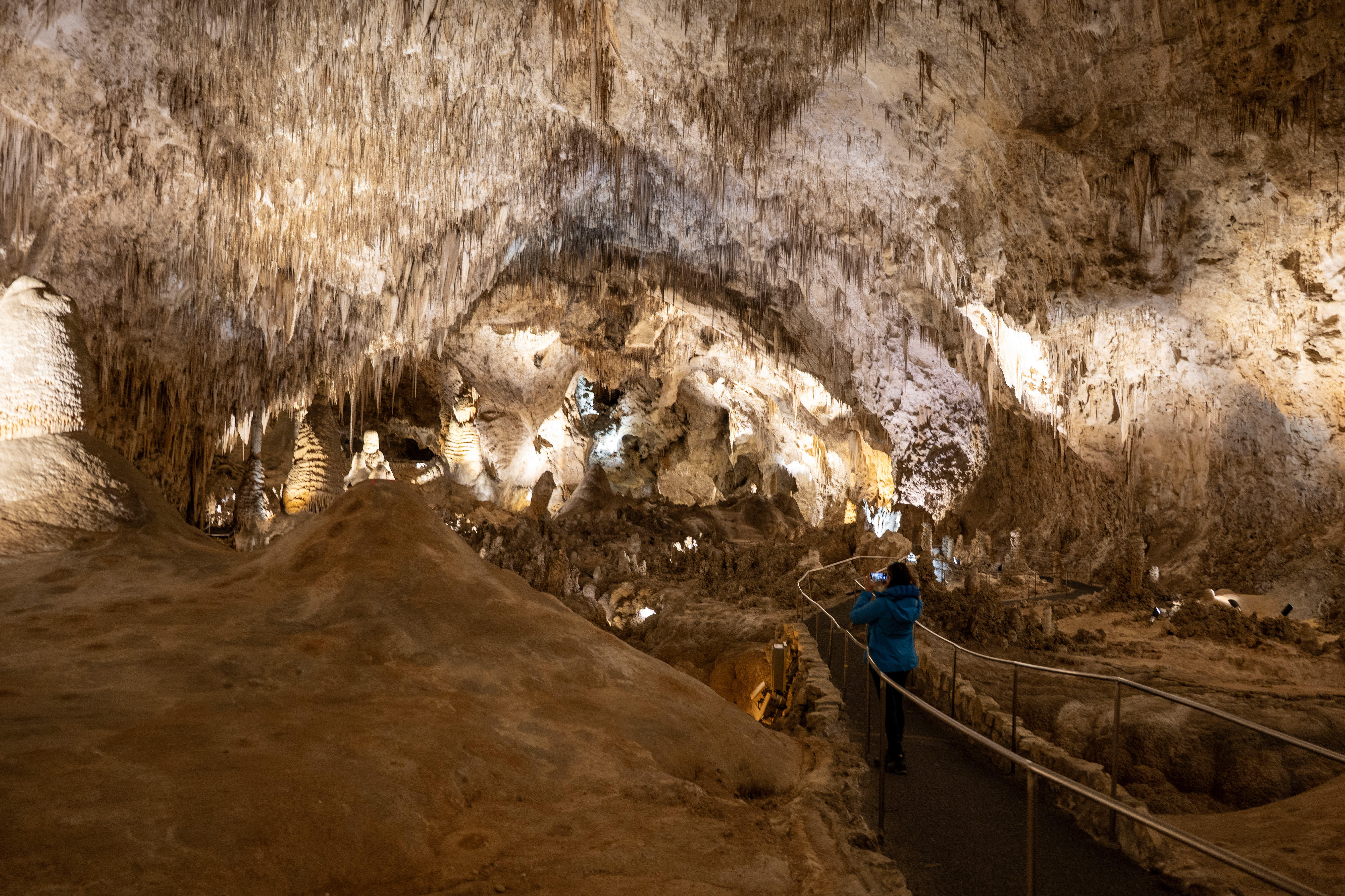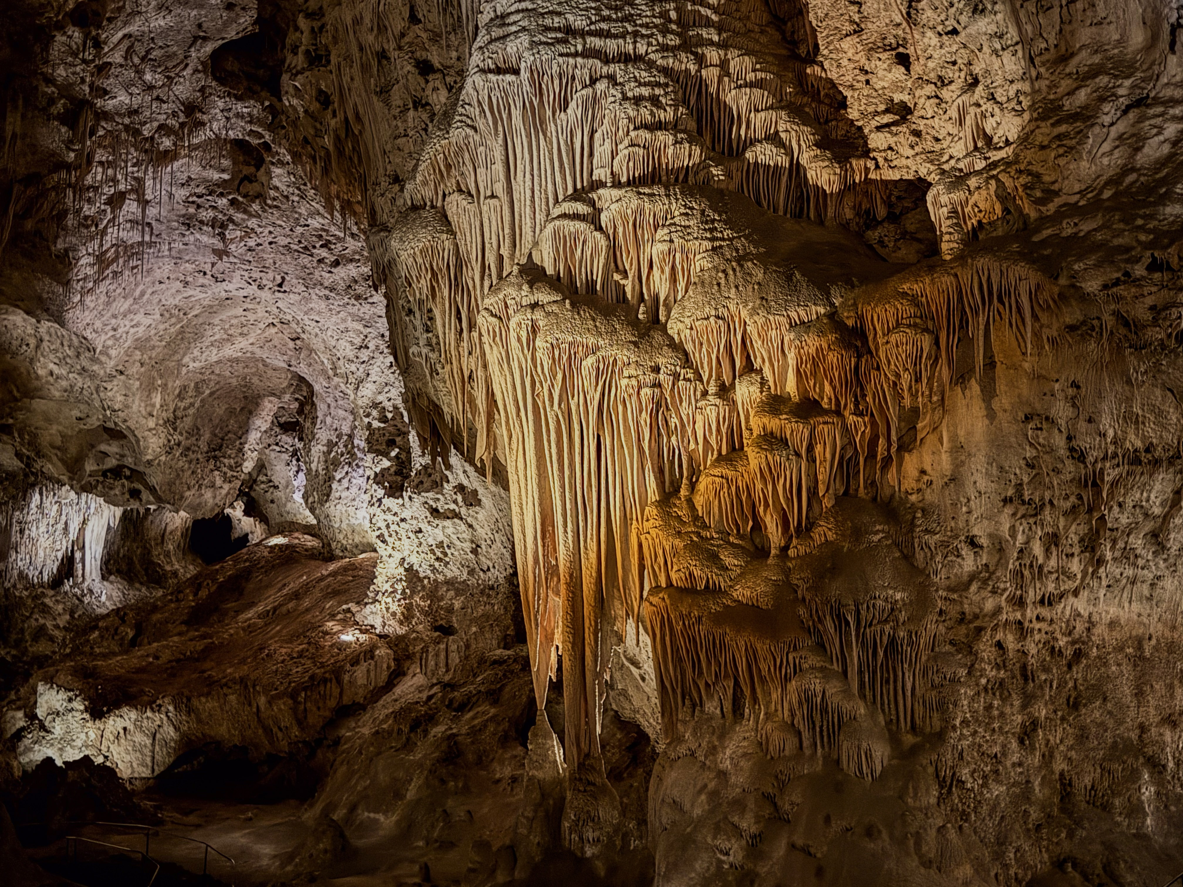 You feel the “weight” of the mountain on your shoulders once you realize just how deep inside it you are! Sometimes you look up, and the ceiling is 350 feet (106 meters) high. Other times, you look down and see another level 75 feet (23 meters) below you. Our 2 km walk through the caverns revealed something new at every step.