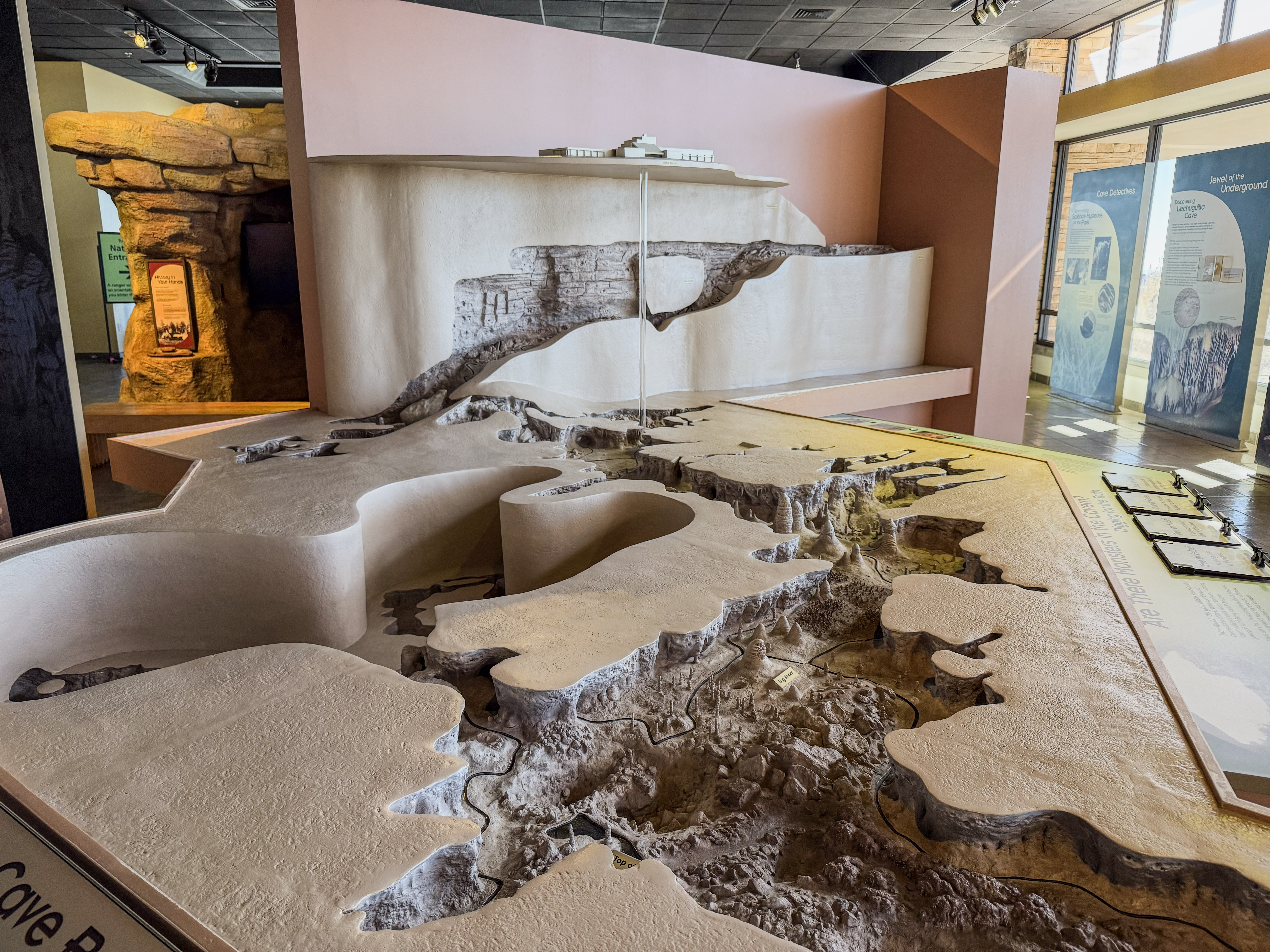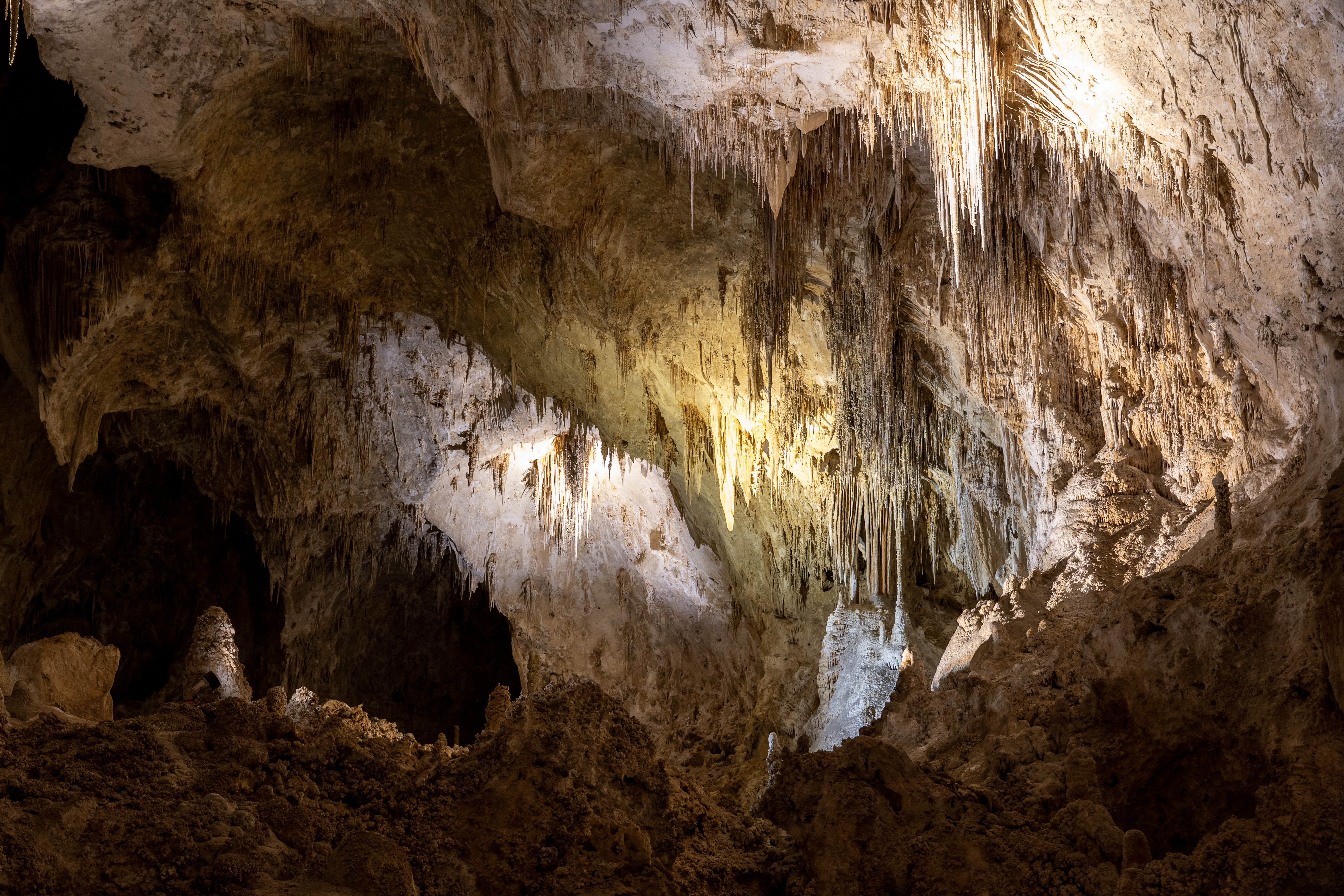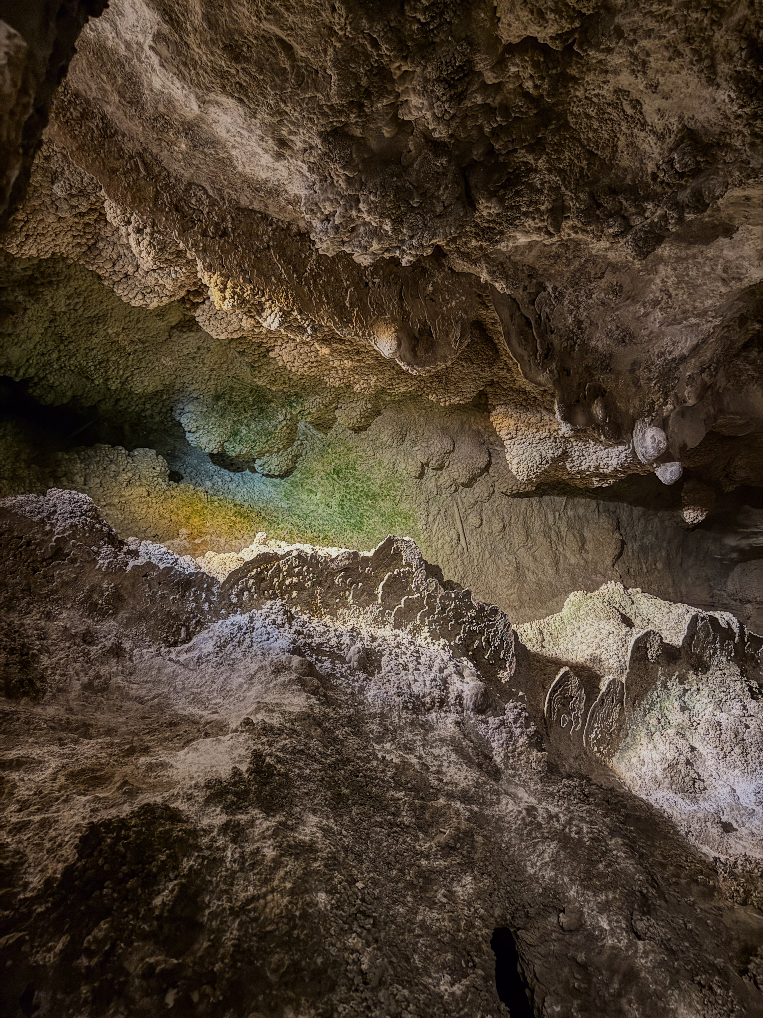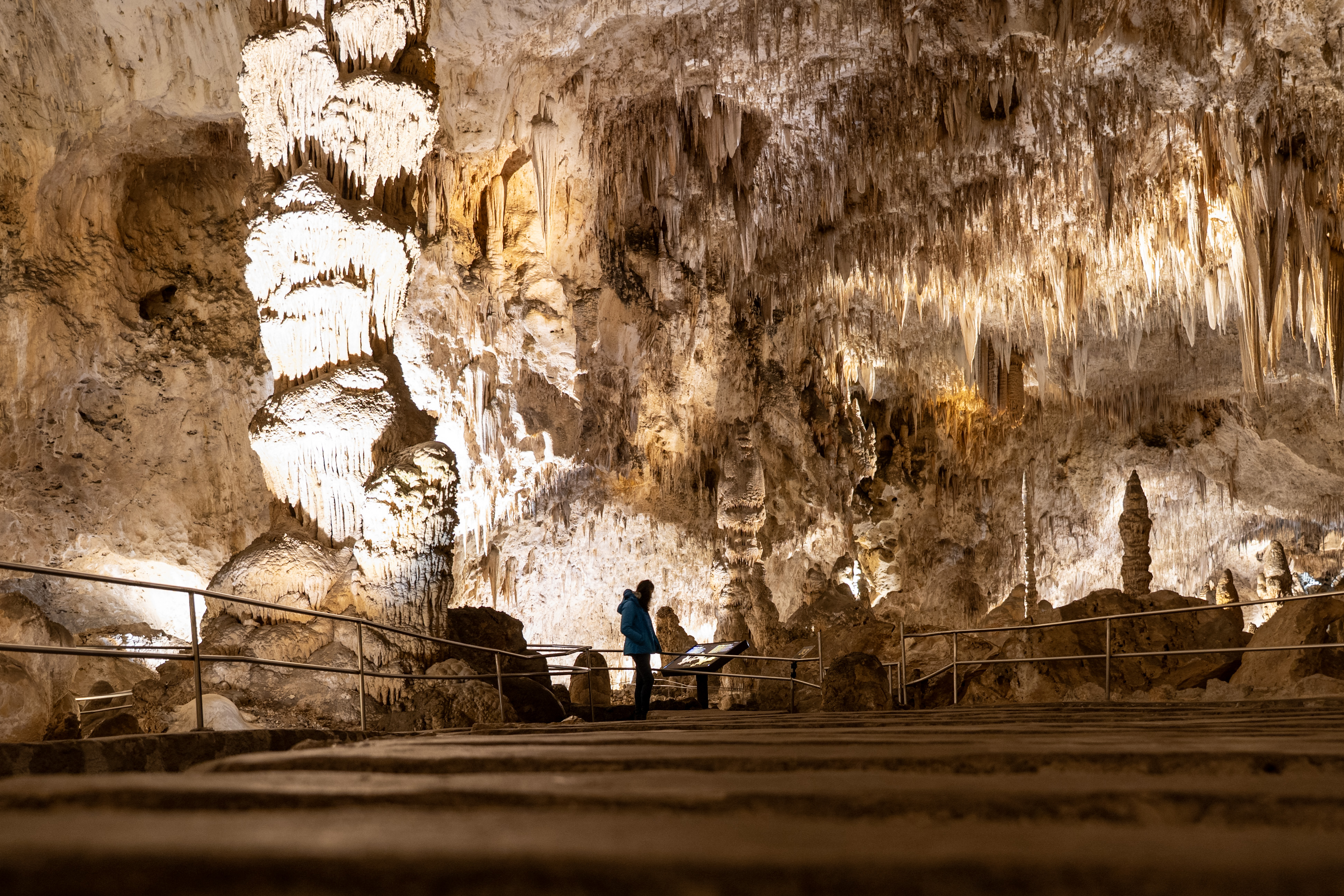 You feel the “weight” of the mountain on your shoulders once you realize just how deep inside it you are! Sometimes you look up, and the ceiling is 350 feet (106 meters) high. Other times, you look down and see another level 75 feet (23 meters) below you. Our 2 km walk through the caverns revealed something new at every step.