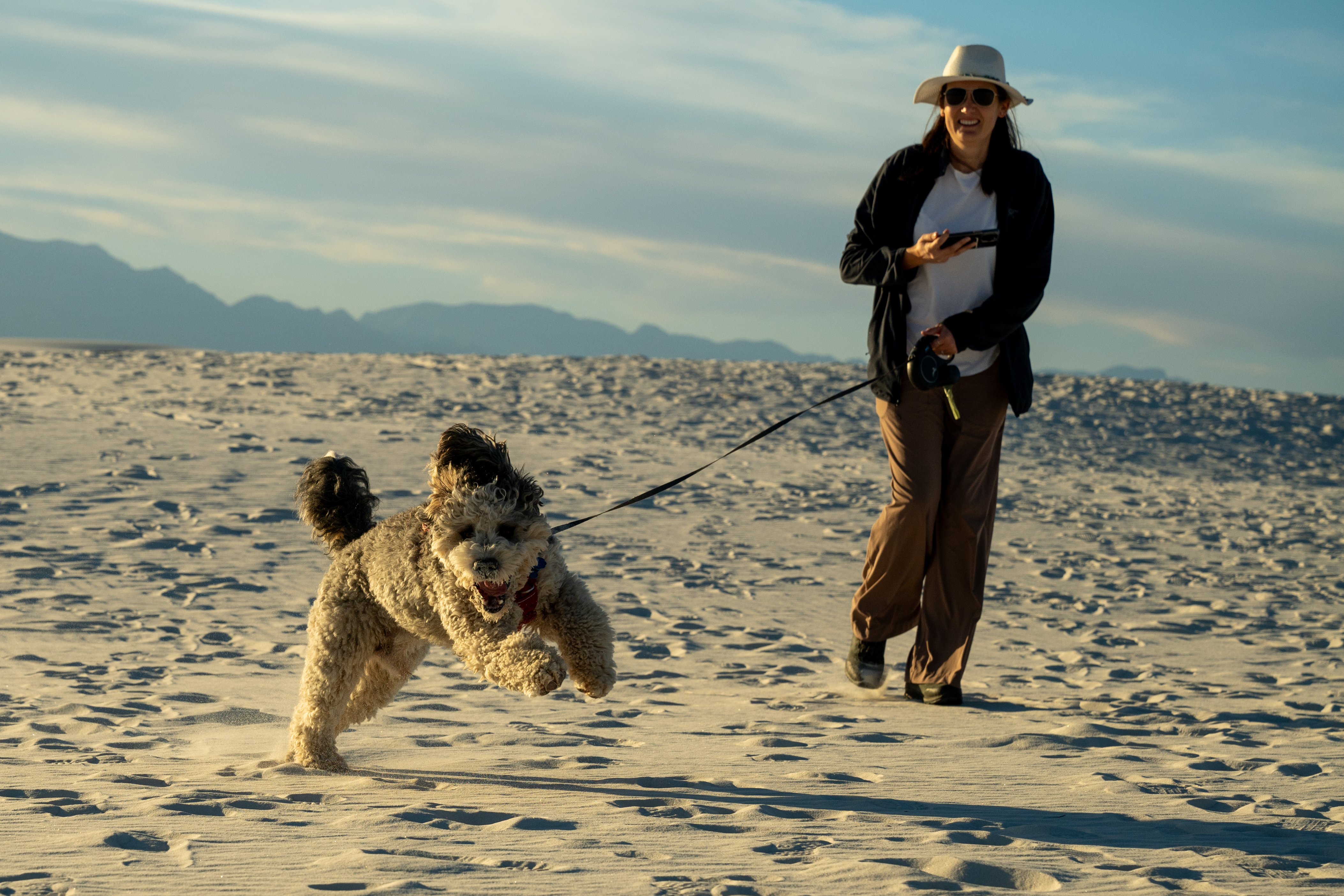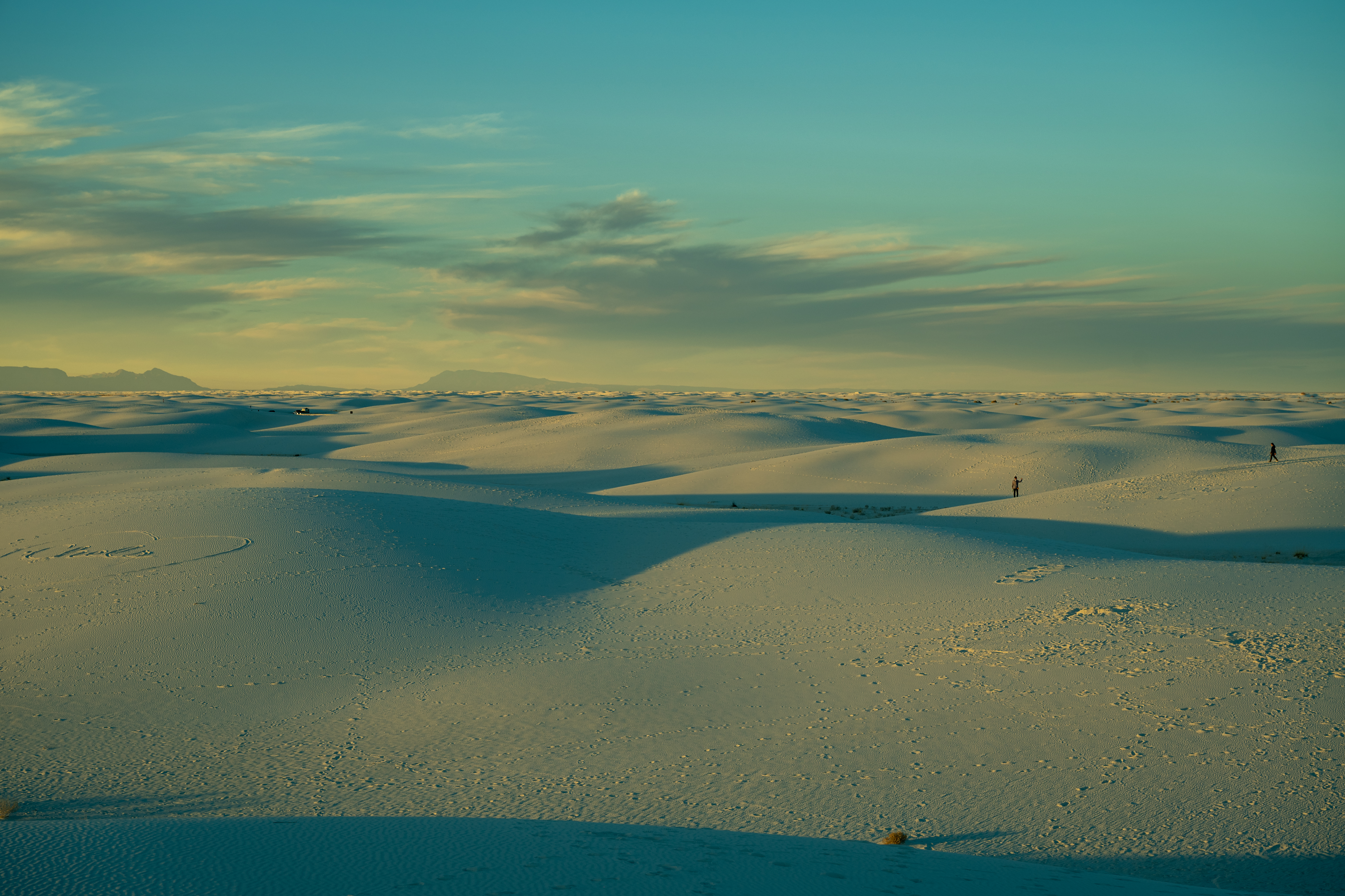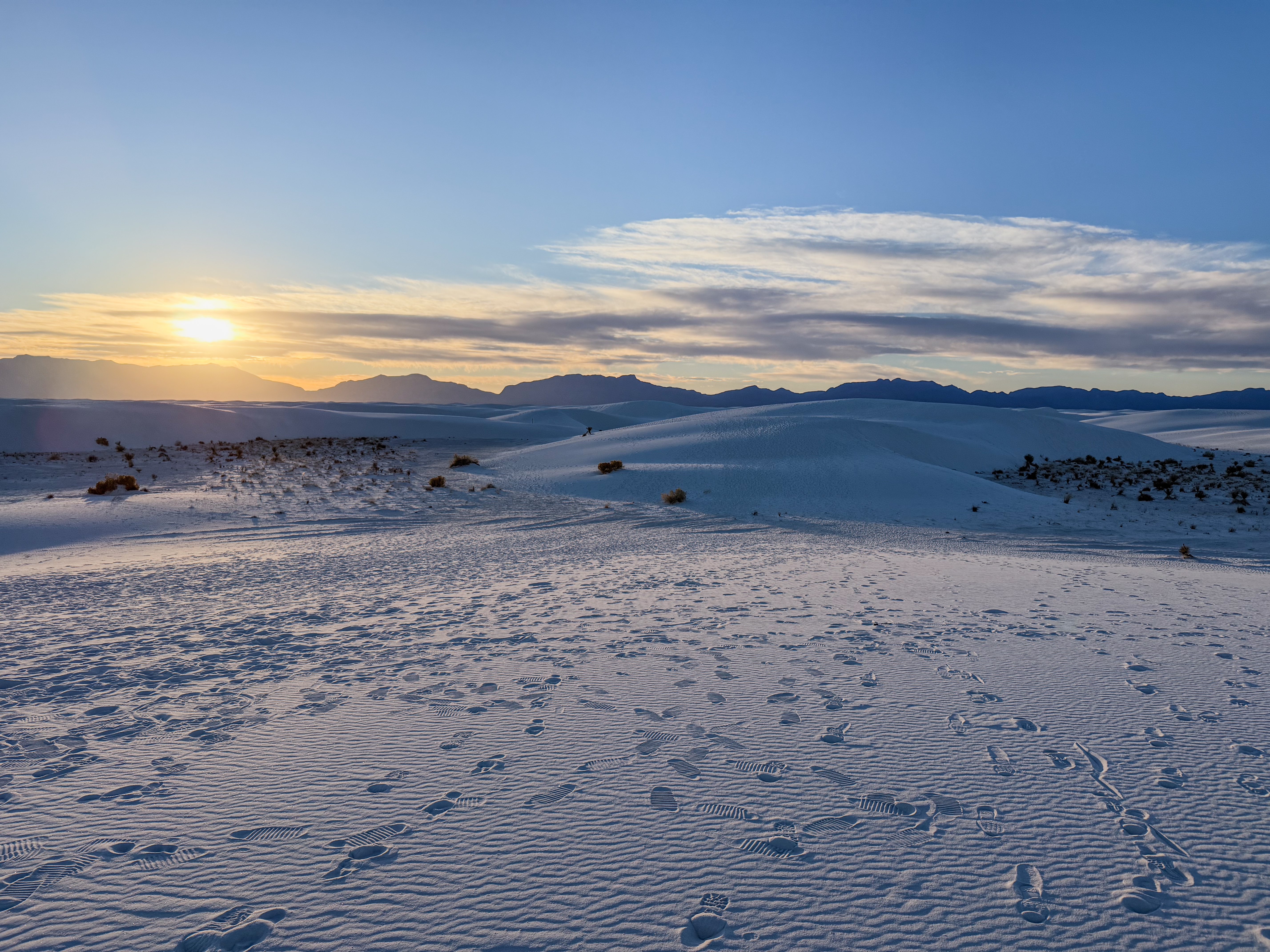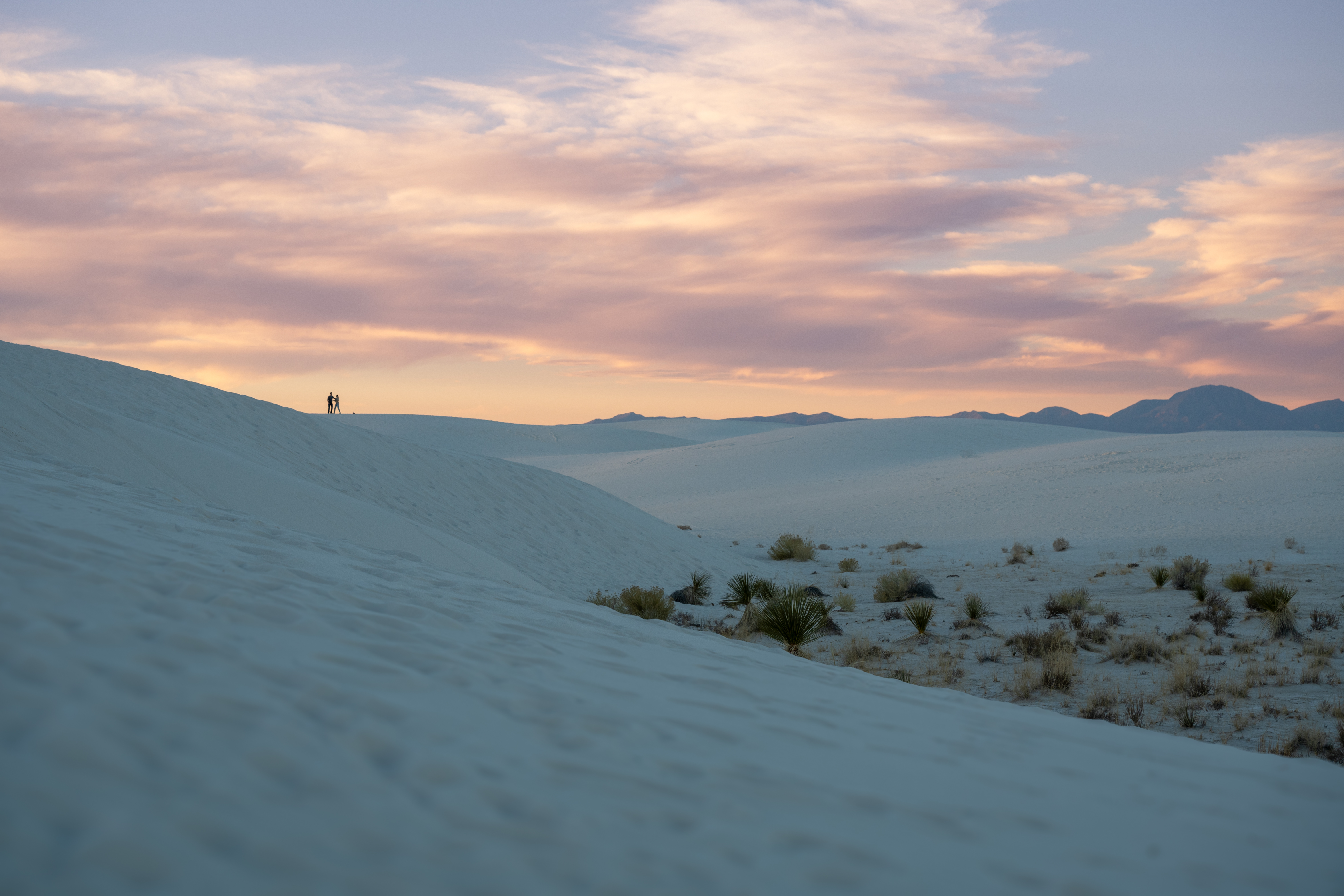 In the Dominican Republic, you have those stunning white sand beaches. Here at White Sands, there’s no water, but the same kind of pristine white sand stretches as far as the eye can see. It’s majestic, serene, and peaceful. We went at the end of the day to catch the sunset colors, and it was just… wow.